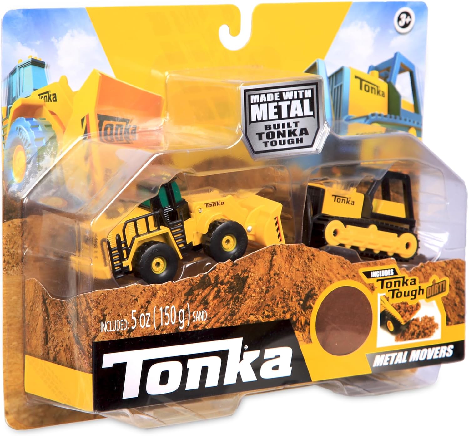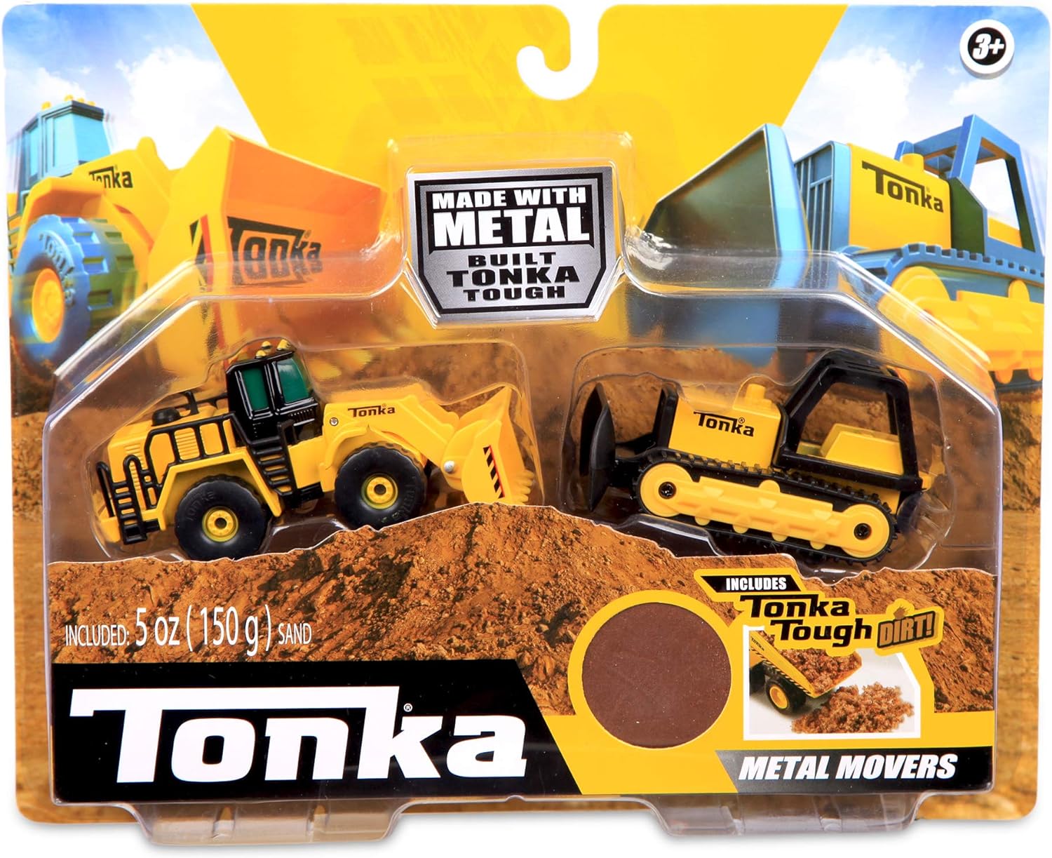 Introducing the all-new Tonka Metal Movers! Built "Tonka Tough", this set includes two diecast vehicles and Tonka Tough Dirt, a no-mess sand compound that mimics real construction site conditions! It's a whole new way to play with all your favorite Tonka vehicles! Appropriate for ages 3 and up!