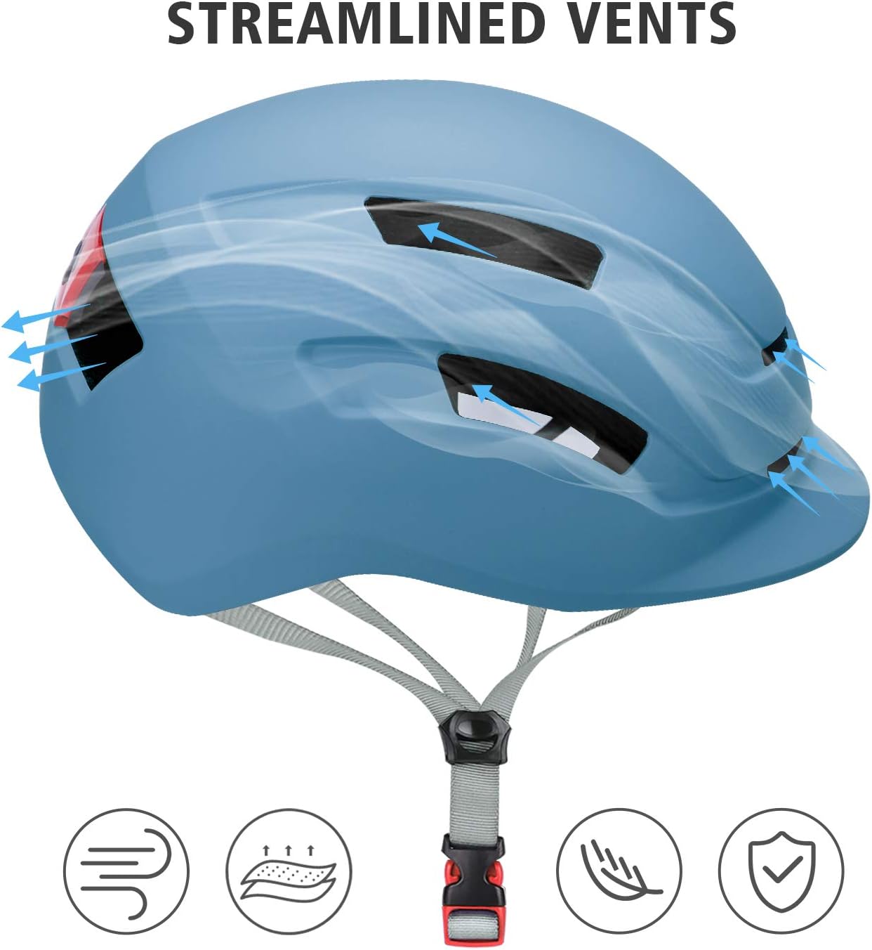 Adult Urban Bike Helmet - Adjustable Fit System & Integrated Taillight for Men Women