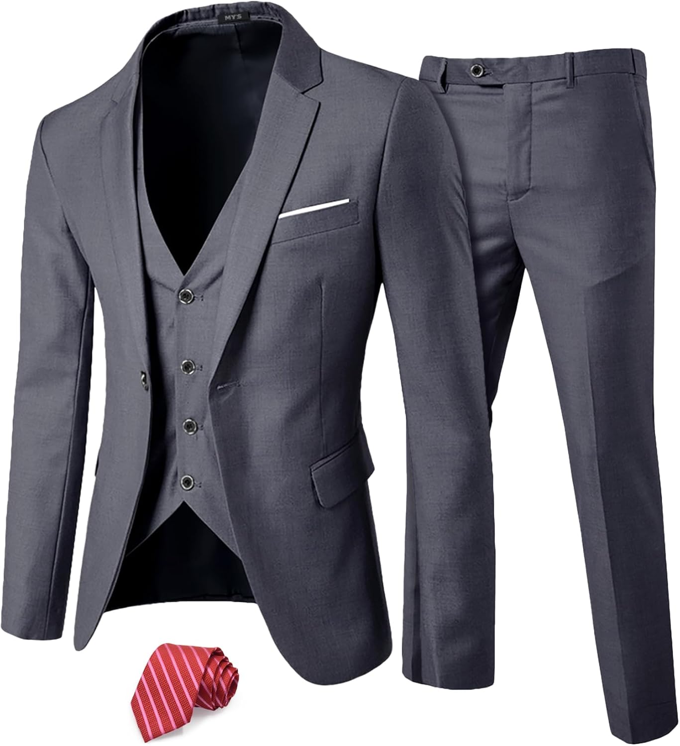 MY'S Men's 3 Piece Suit Set with Tie, One Button Slim Fit Solid Jacket Vest Pants, Prom Party Wedding Business Suits for Men