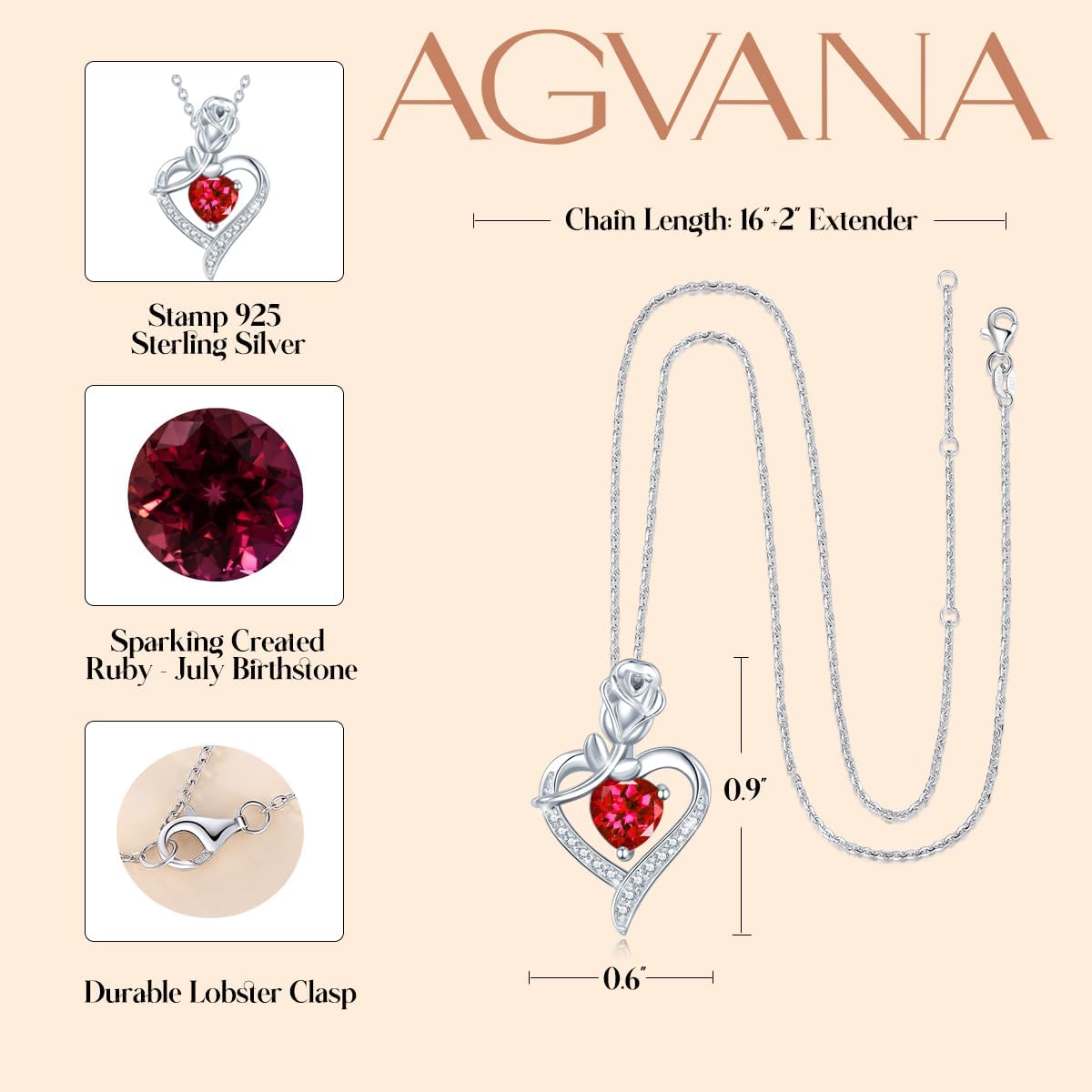 AGVANA Rosy Reverie Birthstone Necklace for Women Sterling Silver Genuine or Created Gemstone Rose Flower Heart Pendant Necklace Anniversary Birthday Gifts for Women Mom Wife Her