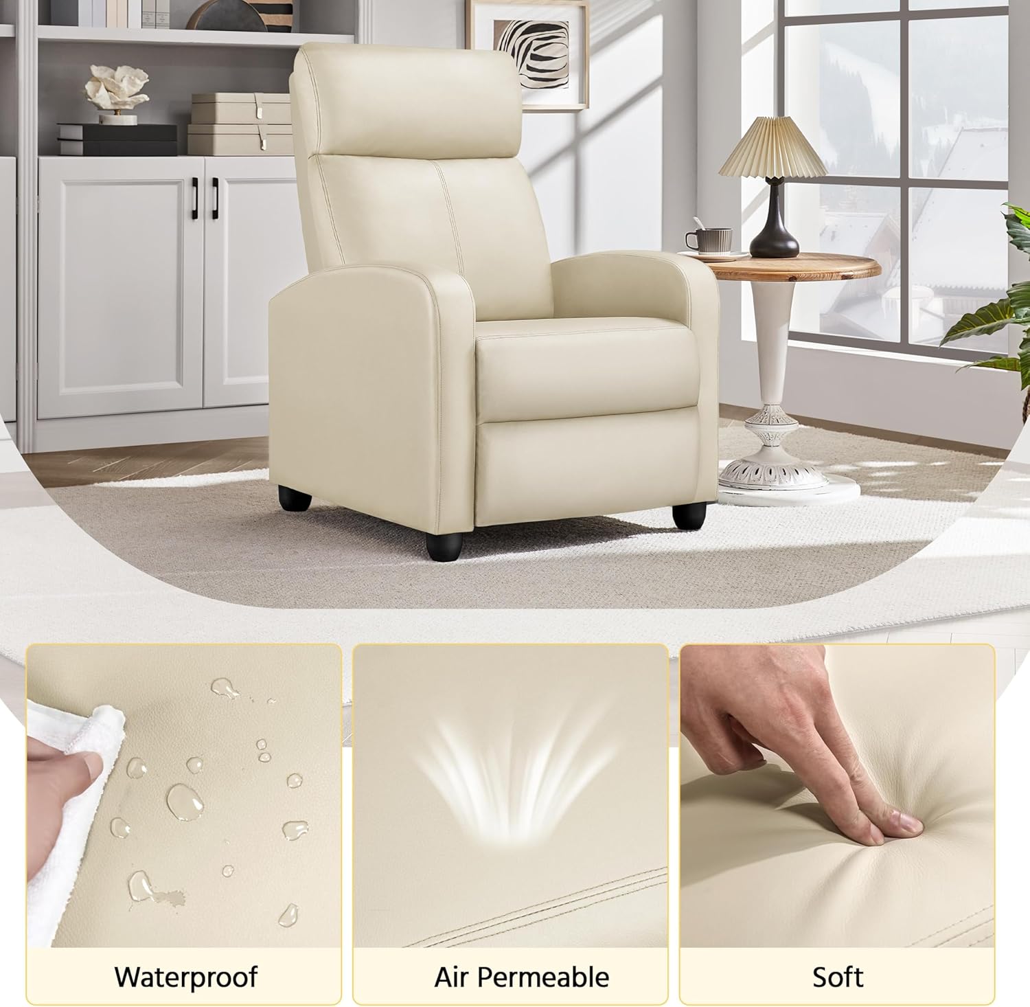 Yaheetech Recliner Chair PU Leather Recliner Sofa Home Theater Seating Adjustable Modern Single Reclining Chair Sofa with Pocket Spring Living Room Bedroom Beige
