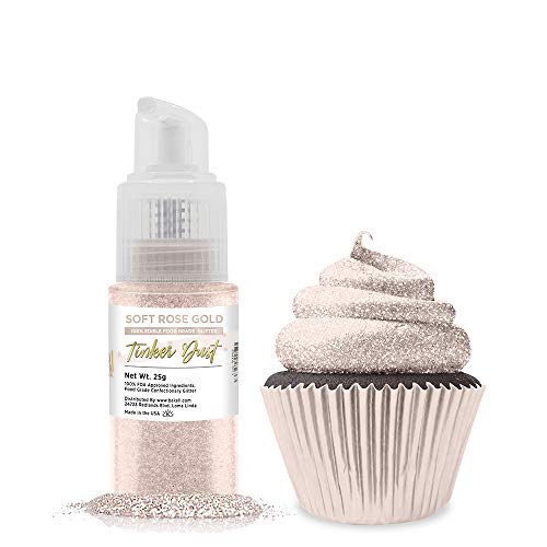 BAKELL Soft Rose Gold Edible Glitter Spray Pump, (25g) | TINKER DUST Edible Glitter | KOSHER Certified | 100% Edible Glitter | Cakes, Cupcakes, Cake Pops, Drinks, Dessert Vegan Glitter & Dusts