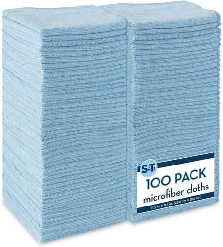 One 100 pack of S&T INC. Microfiber Towels Cleaning measuring 11.5 inches by 11.5 inches each; rags for cleaning house are the perfect kitchen cleaner, or add to your car cleaning kit