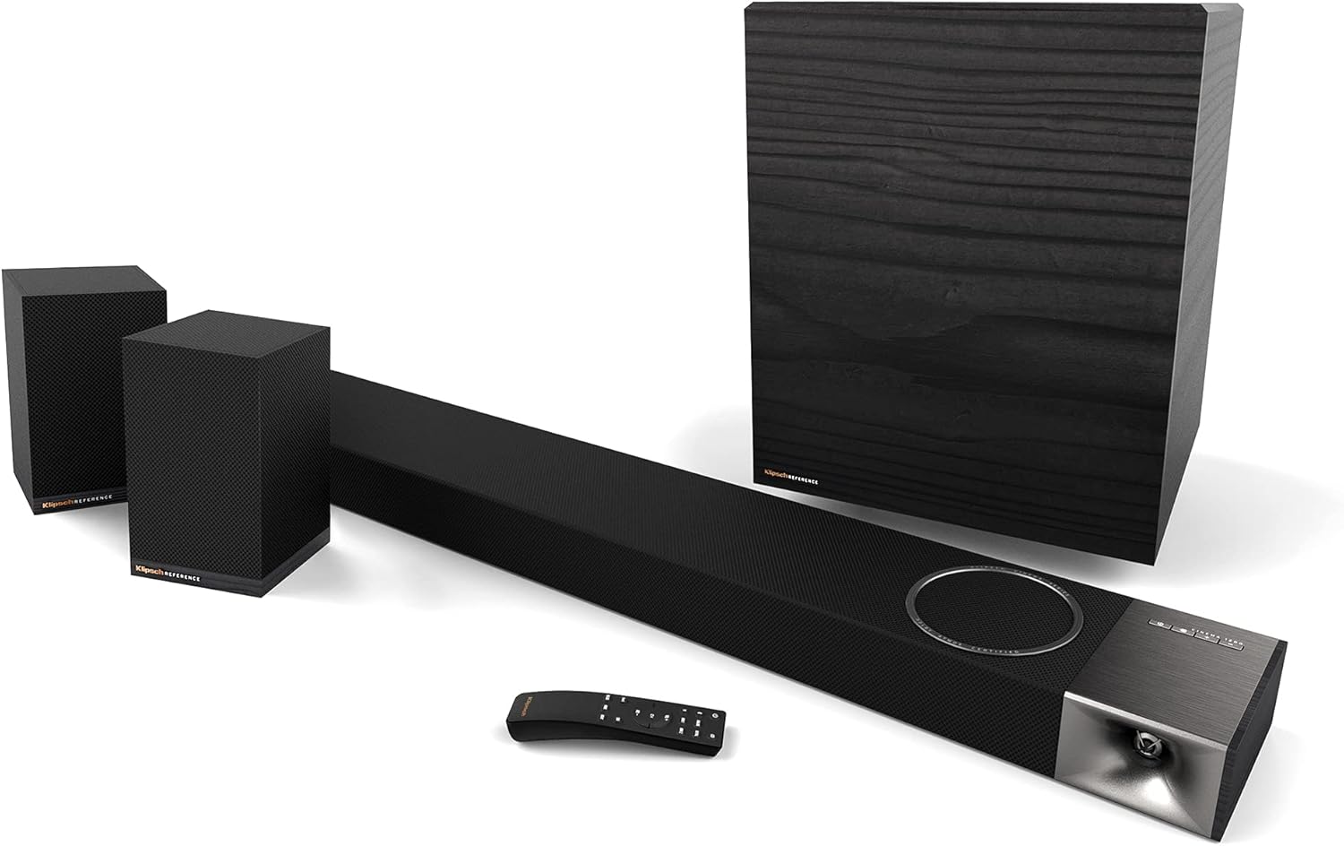 Barra de sonido Klipsch de 54” 5.1.4 con decodificación completa 7.1.4 Dolby Atmos, subwoofer inalámtrico de 12” y altavoces envolventes traseros inalámbricos.
