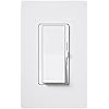 This dimmable switch operates with up to 150-Watt of dimmable LED/CFL or 600-Watt of incandescent/halogen, allowing control of multiple bulb types on the same circuit. Designed to control a broad range of dimmable LED bulbs and provides compatibility across brands. The Diva dimmer switch features a paddle switch to easily turn lights off or on, returning them to your preferred level. The coordinating Claro wall plate is sold separately. Electrical light switches like these are great energy-saving alternatives to traditional incandescent or halogen sources. Lutron's dimmers with LED+ Technology provide a solution for dimmable LED challenges, while setting the right light level to improve mood and ambiance. The large paddle switch provides easy operation, while the slider adjusts the light level to suit any activity. These single pole dimmer switches improve performance compared to standard dimmers. Lutron dimmers provide full-range dimming for halogen and incandescent bulbs, ensuring today's switch light dimmer is compatible with future lighting technologies.
