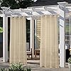 LORDTEX Burlap Linen Look Outdoor Curtain for Patio - 2 Panels Waterproof Tab Top Sheer Curtains for Pergola, Porch, Cabana and Gazebo Indoor/Outdoor Voile Sheer Drapes, 52 x 84 Inch, Linen