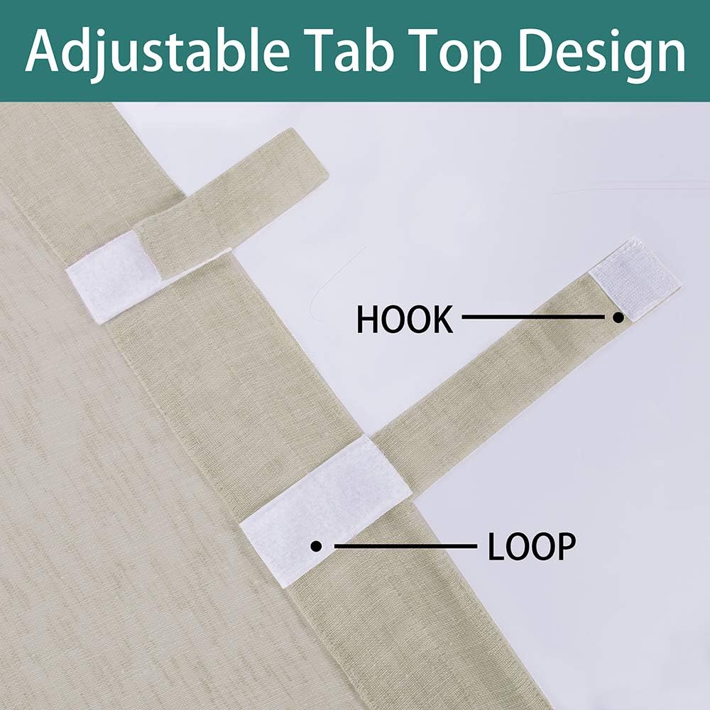 WHAT'S IN THE PACKAGE? Each package includes 2 Belgian linen outdoor curtains and 2 bonus tiebacks. Each sheer outdoor curtain measures 52-inch width by 84-inch length and finished with 3-inch length detachable tab top to fit well with standard curtain rods, making them easy to install and move along the pole.