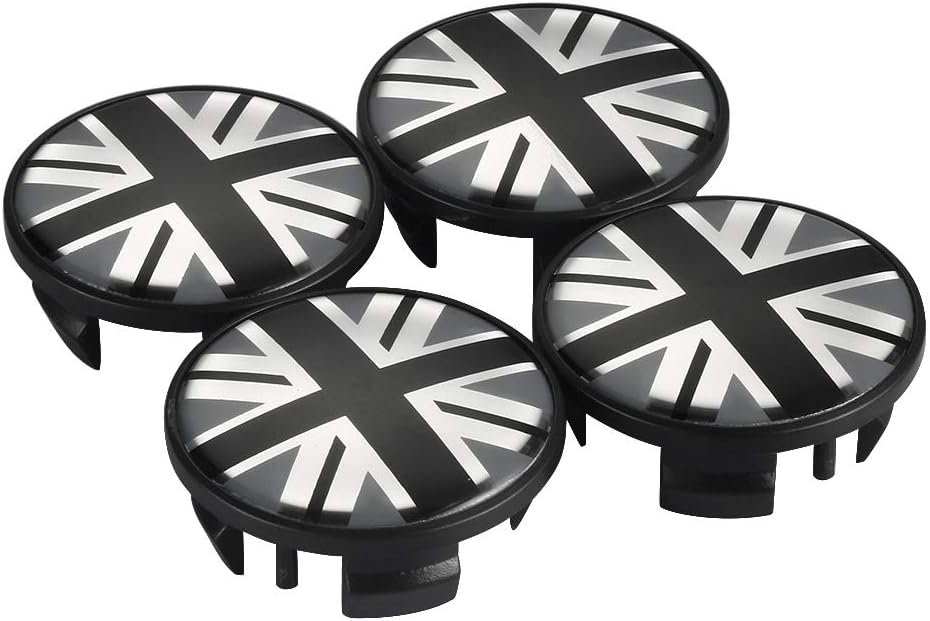 Mini Wheel Center Caps Black with "UK Flag" Chrome outlined Color: Black & White Product Name:Wheel Center Cap Material:ABS + Aluminium Diameter: Approx 54mm Dimension: Outside of cap: 54MM / 2.13 Inches Back Clip Cap: 50MM / 1.97 Inches