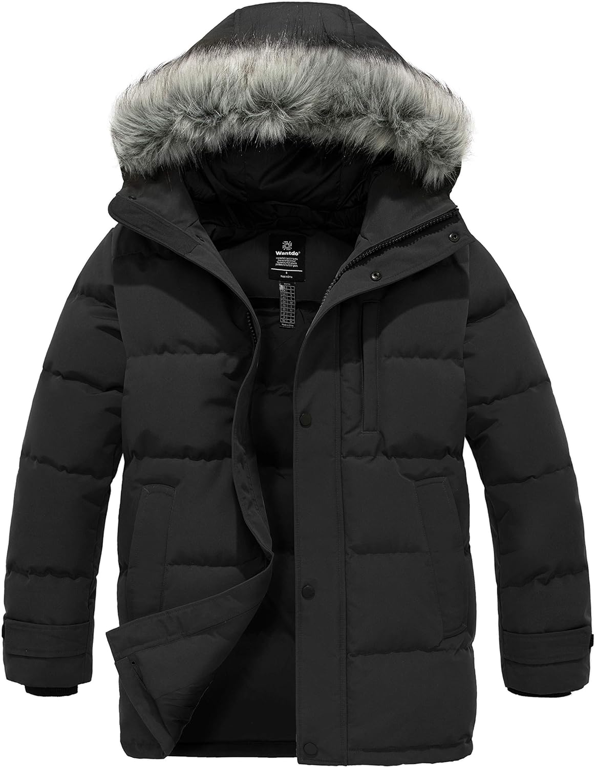 wantdo Men's Winter Jacket Thicken Winter Coat Warm Puffer Jacket with Faux Fur Hood
