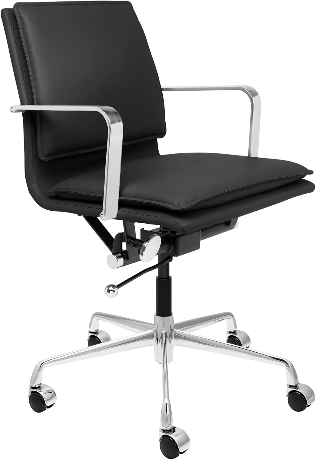 Laura Davidson Furniture Lexi II Padded Office Chair - Mid Back Desk Chair with Arm Rest, Swivel & Cushion Availability, Made of Faux Leather, Black, Computer Chair