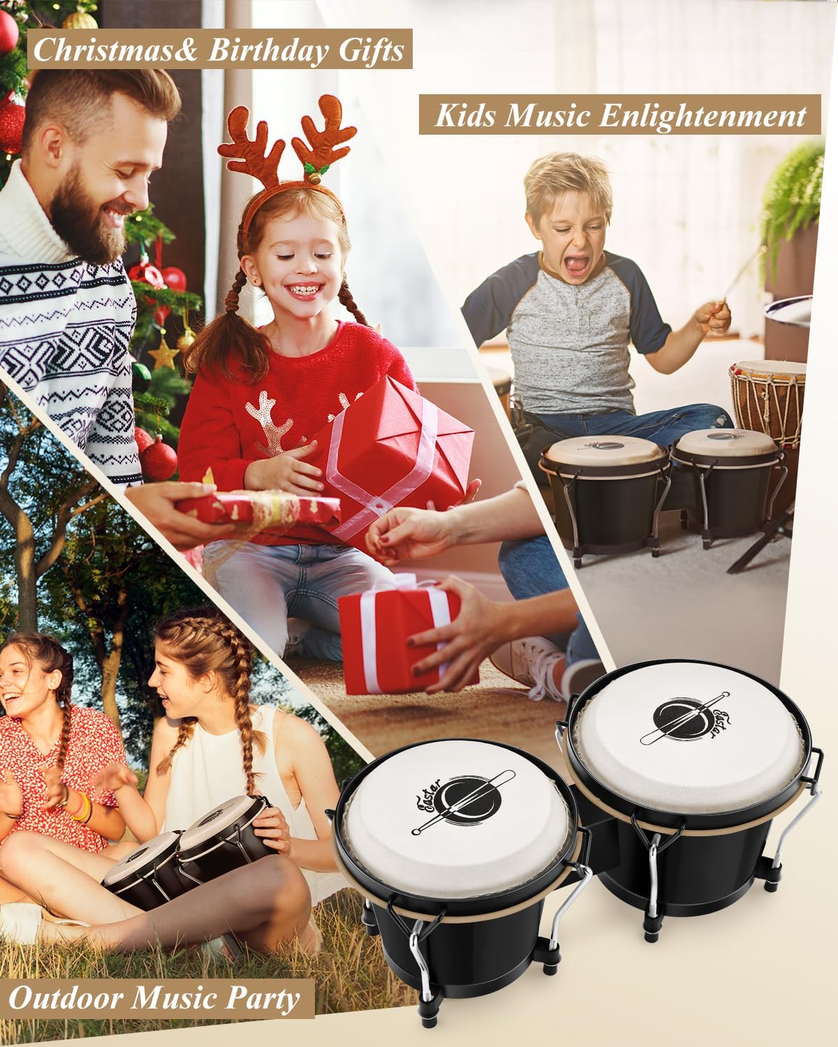 🥁Suitable for all ages: This bongo drum set has no sharp edges, and the inside of the drum is polished into a smooth arc shape, which is safe for children and will not scratch hands. it is suitable for beginners and primary bongo drum lovers.