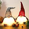 Juegoal 12" Lighted Christmas Gnome, Handmade Sequins Hat Scandinavian Swedish Tomte, Light Up Plush Elf Toy Holiday Present, Battery Operated Winter Tabletop Christmas Decorations, 2 Set