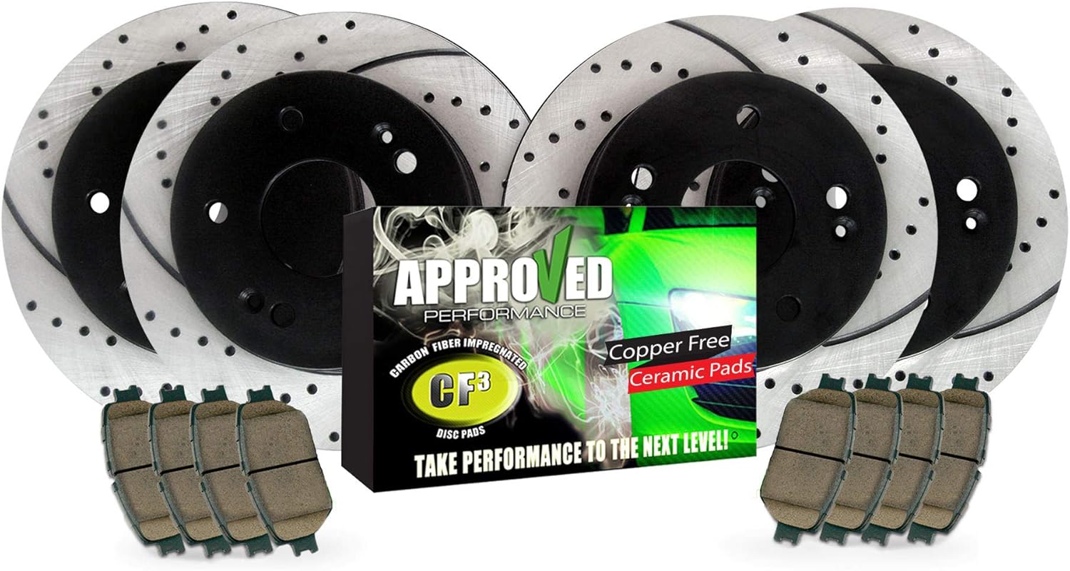 Approved Performance C3326 Front and Rear Drilled Slotted Disc Brake Rotors plus Ceramic Pad Kit Fits 2006 2007 2008 2009 2010 Jeep Grand Cherokee SRT8 Models Only