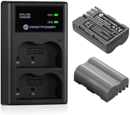 Smart Dual-Slot Charger: Equipped with an intuitive LED charging indicator (Red = Charging, Green = Fully Charged or No-load). Charge two EN-EL3e batteries simultaneously for faster power-ups, maximizing efficiency for photographers on the go