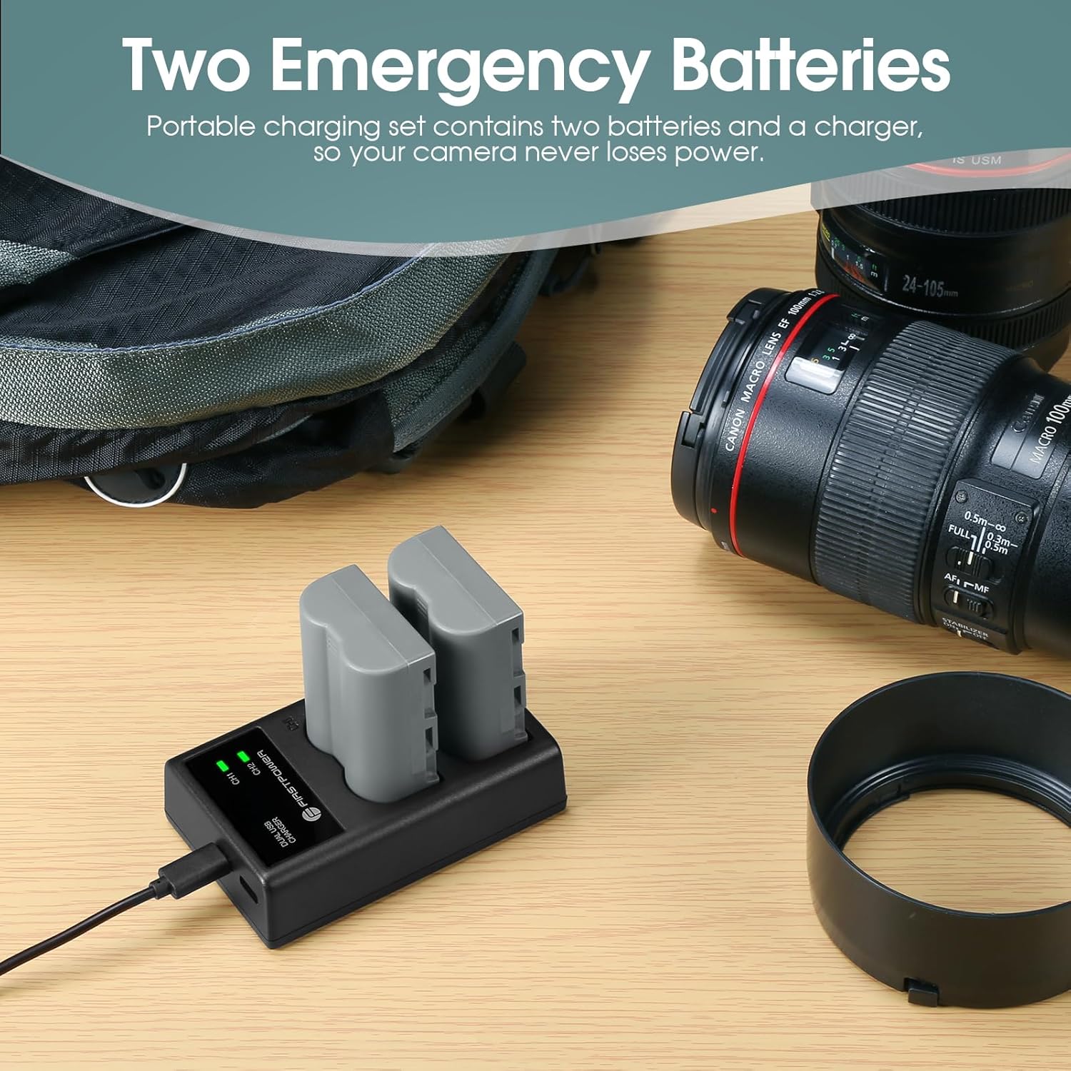 Complete Kit & Support: Includes 2 EN-EL3e batteries, 1 Dual-slot battery charger, 1 USB-C charging cable, and cleaning cloth; backed by 30-day refund and 24/7 customer service. Any question or advice please contact us