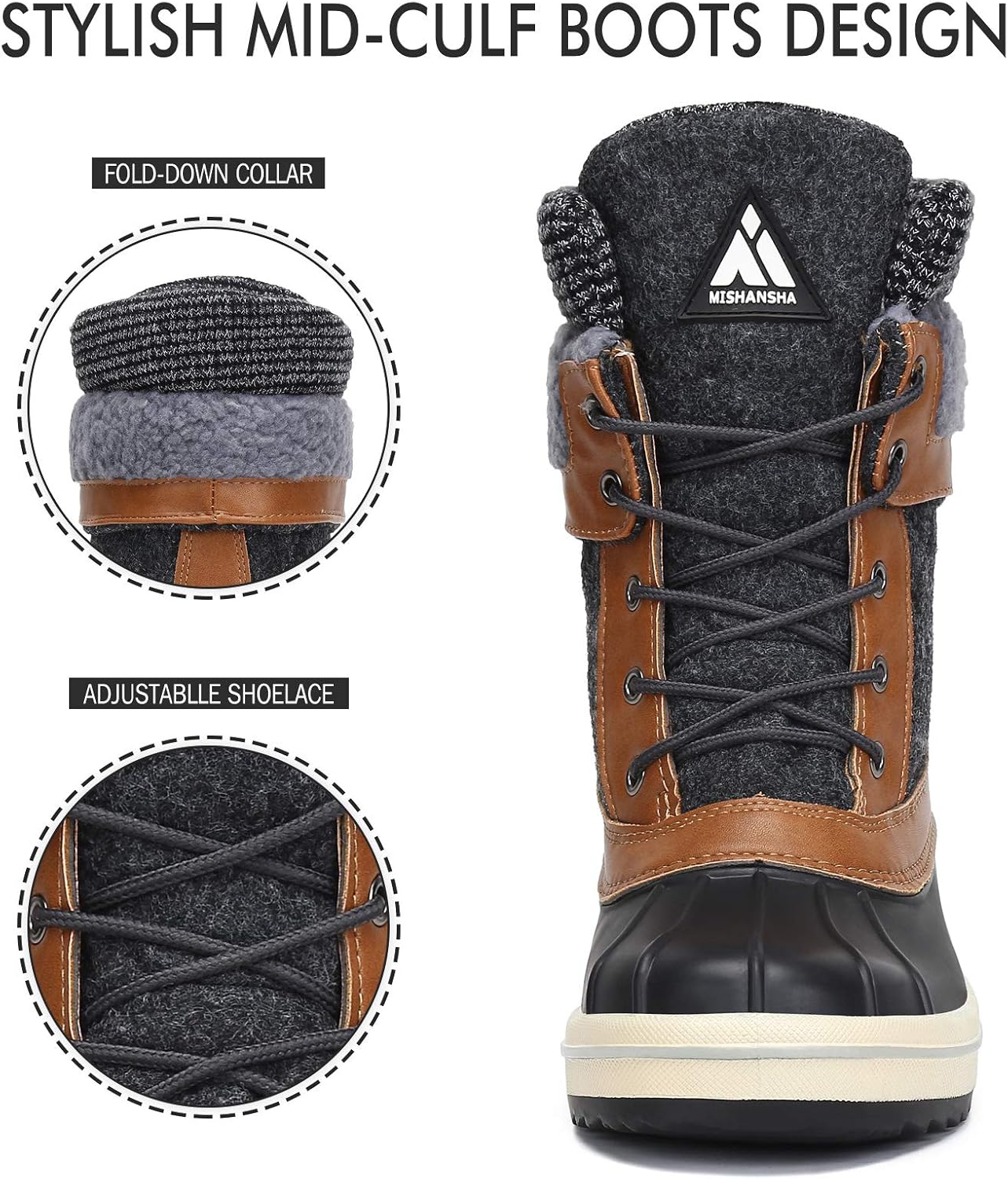 Botas de Nieve Mishansha para Mujeres Bota de Invierno Impermeable hasta la Media Pierna