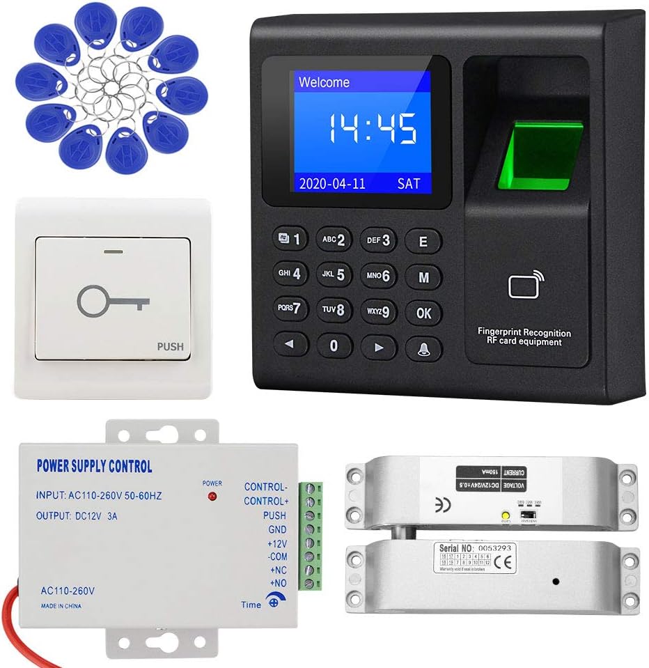 LIBO Complete RFID Access Control System Fingerprint Access Controller Keypad, DC12V / 3A Power Supply Transformer, Electronic Bolt Lock with Exit Button, 125KHz ID Keyfobs for All Type of Doors