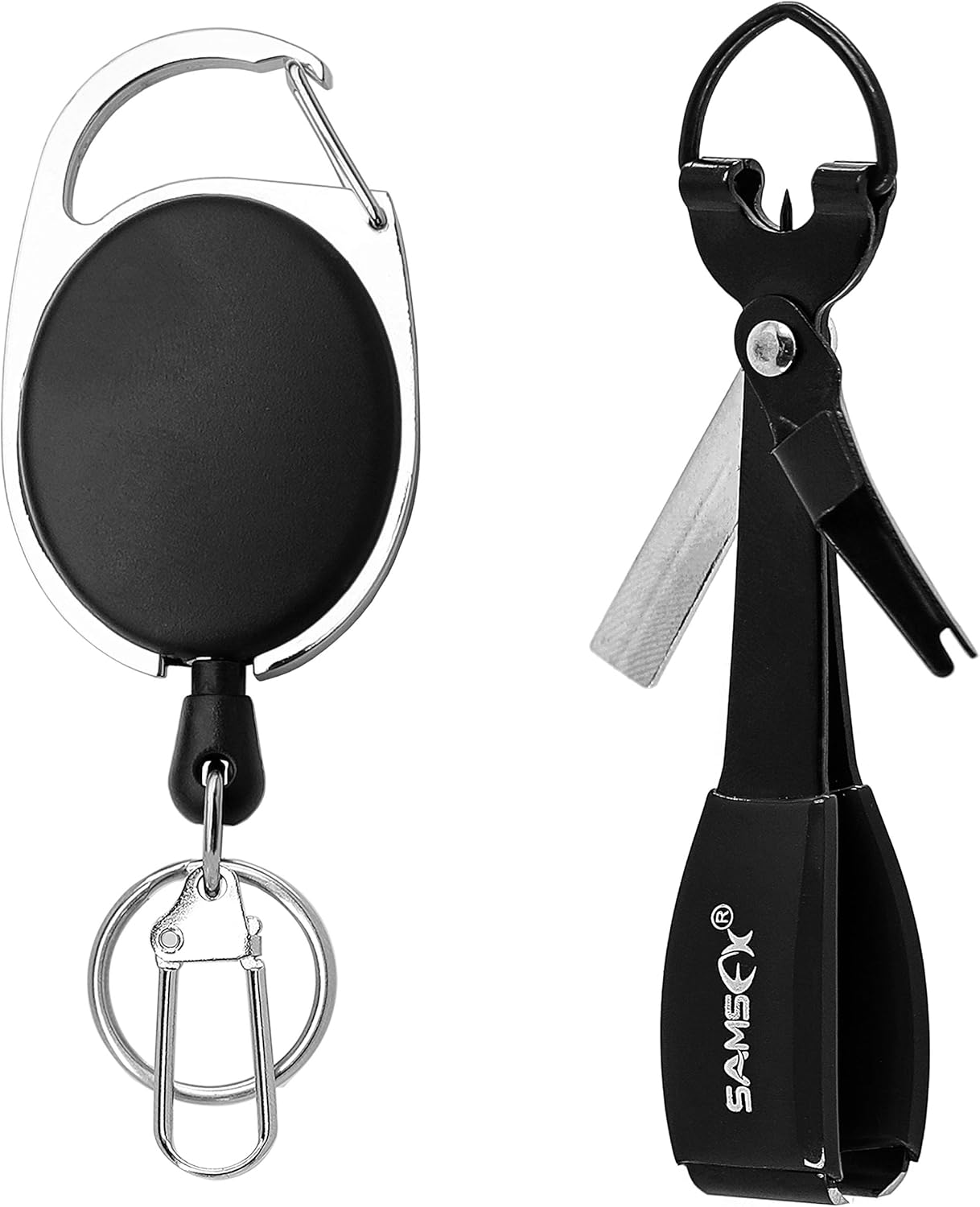 SAMSFX Fishing Knot Tying Tool, Multifunctional Fly Fishing Nippers with Retractor, Fishing Line Knot Tyer, Fast Tie Nail Knots, Tackle Box Accessory
