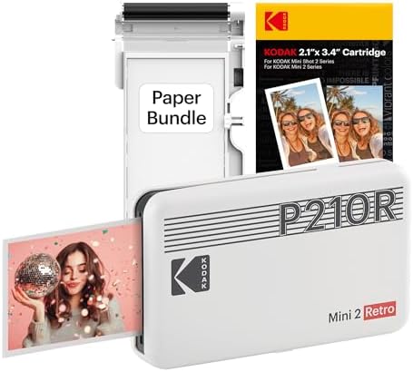 Impresora fotográfica portátil Kodak Mini 2 Retro 4PASS, 2.1x3.4 pulgadas, paquete de 38 hojas, blanco