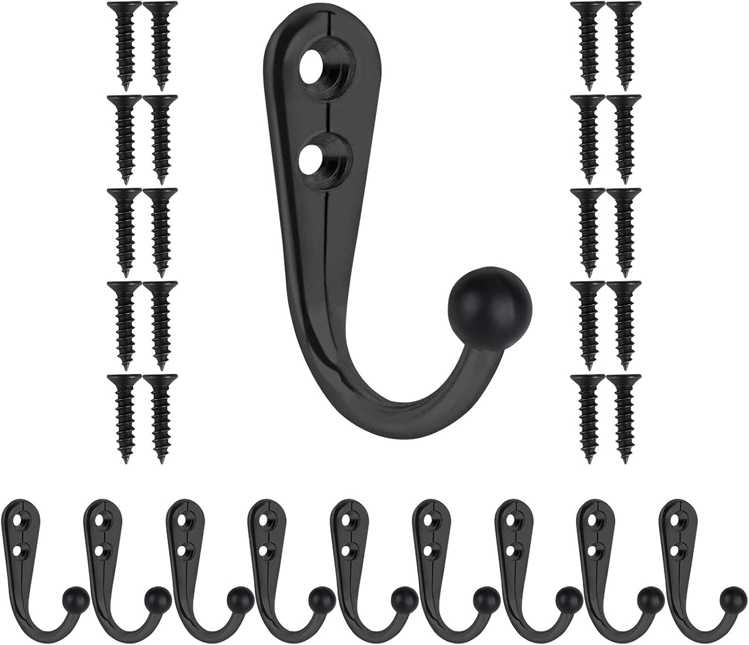 10 Pcs Coat Hooks Wall Mounted With 20 Screws: The black metal wall hooks for hanging coats match well with each other and are long-lasting, the towel hooks for hat keys closet bag etc
