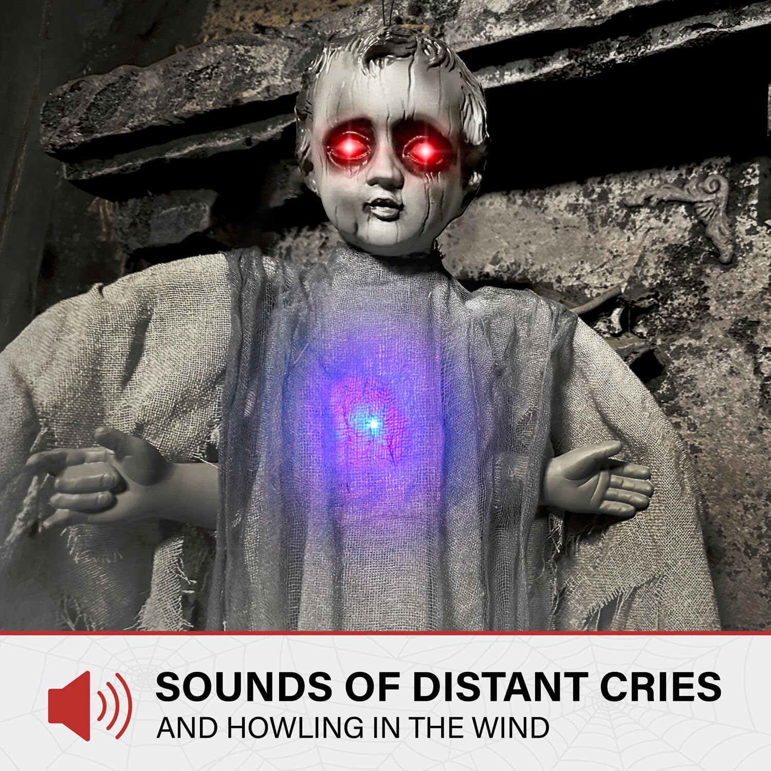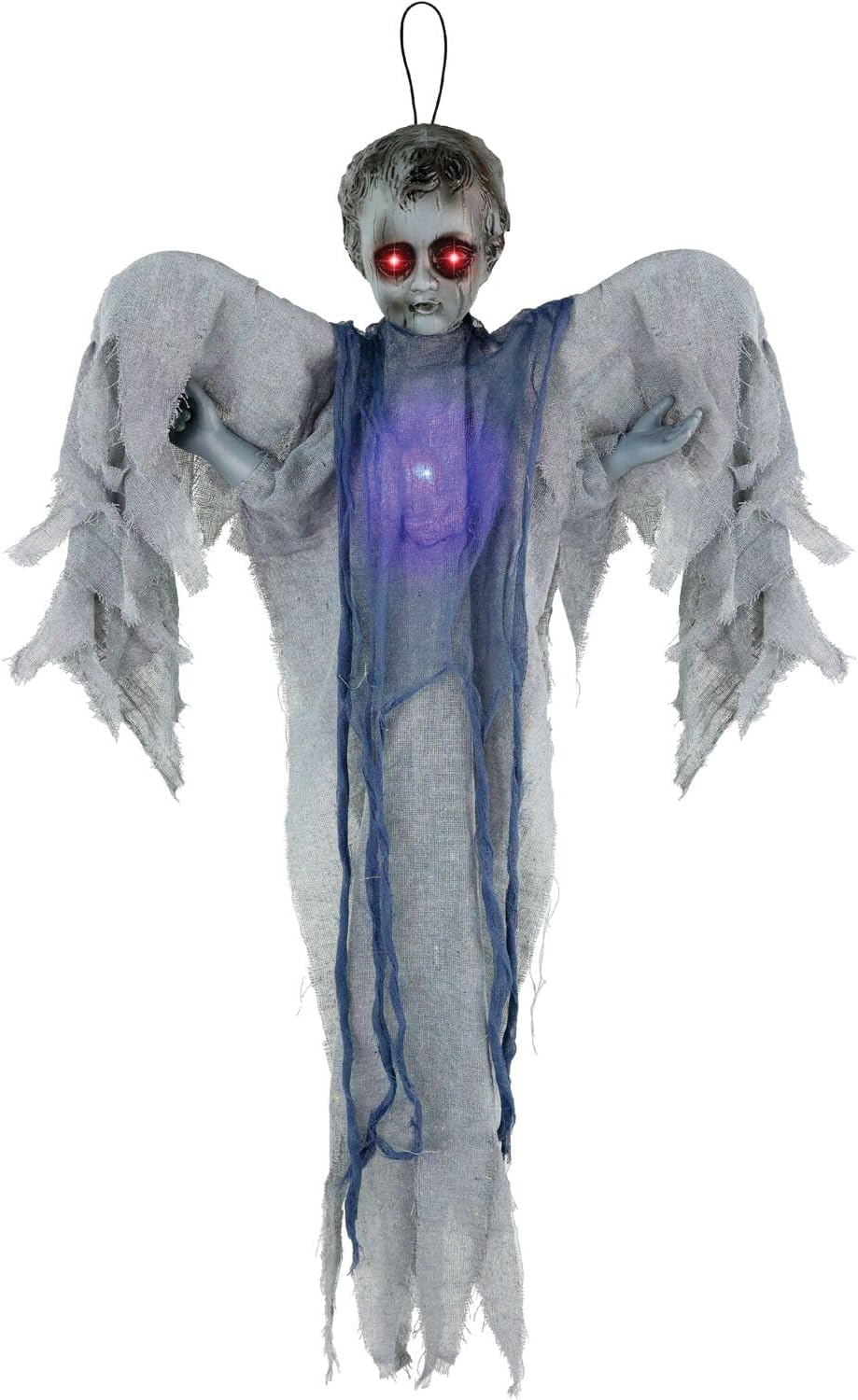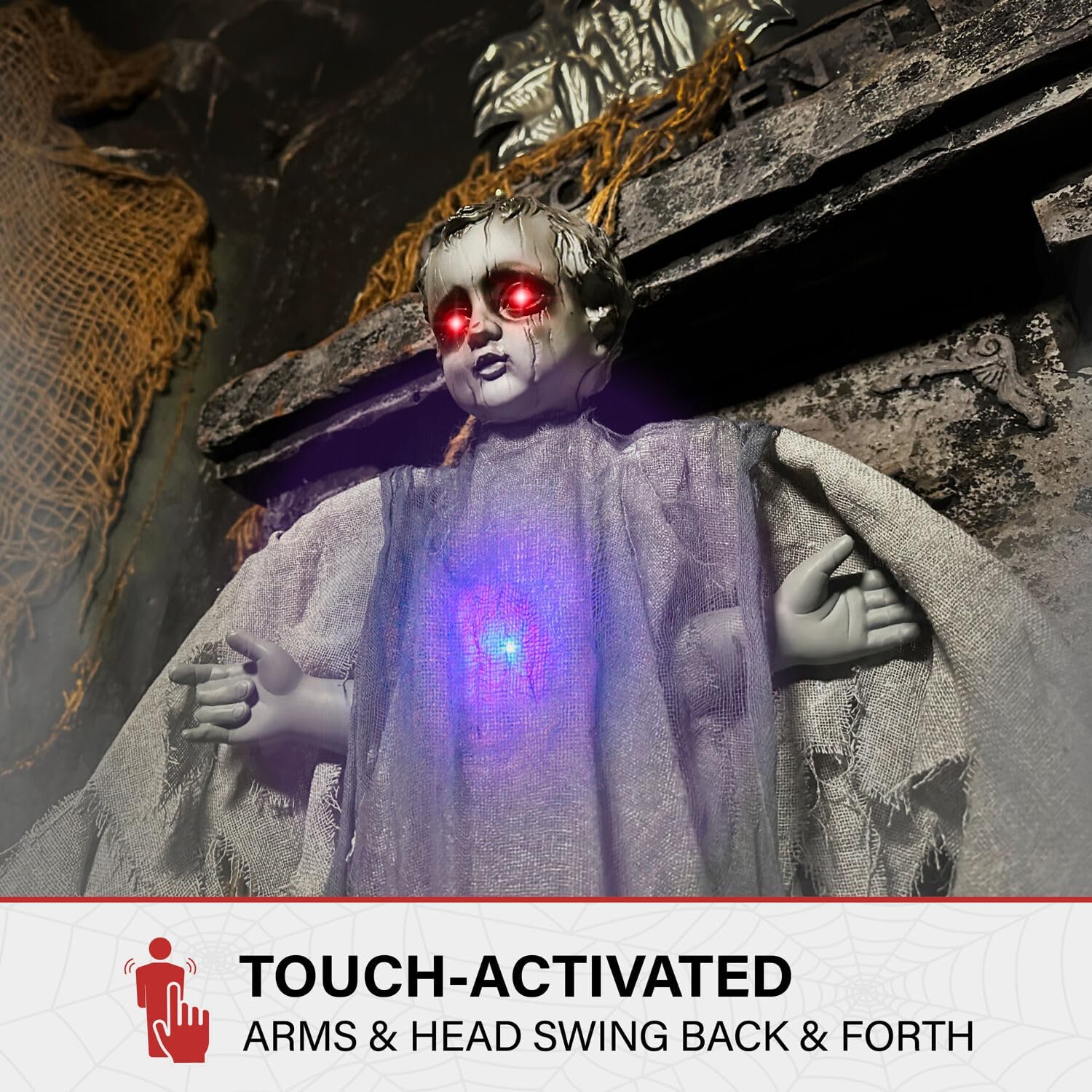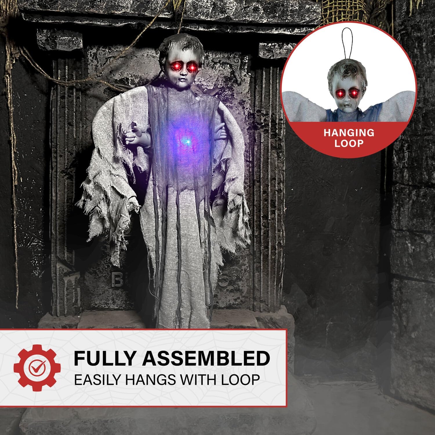 Haunted Hill Farm Animatronic Scary Haunted Angel with Touch Activated Lights and Sound, Battery-Operated Indoor or Covered Outdoor Halloween Decoration