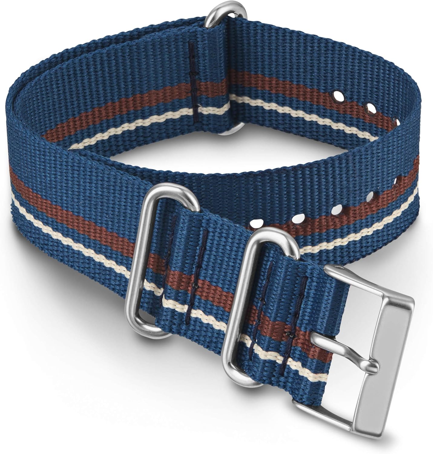Esta resistente y cómoda correa de tela de doble capa deslizable está diseñada para relojes con anchos de asa de 20 mm.