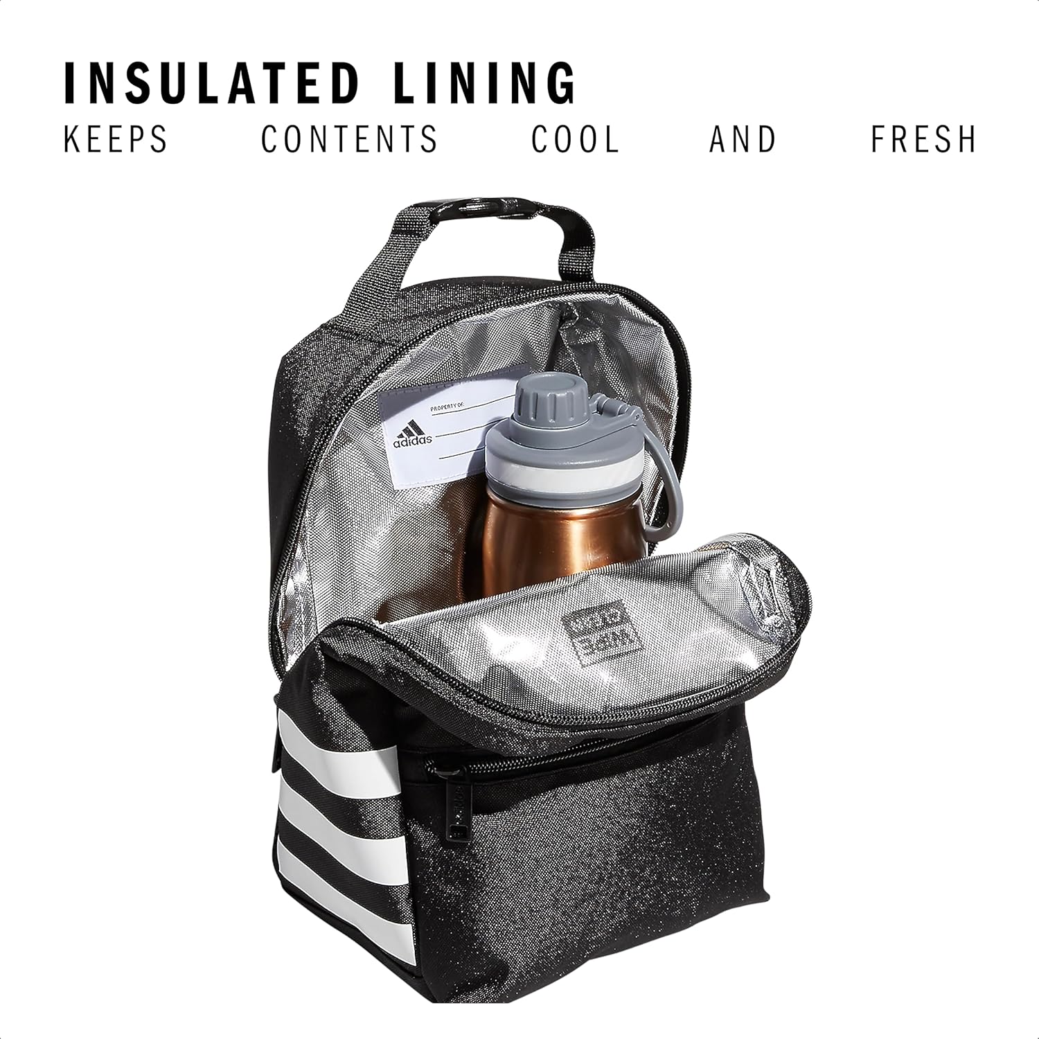 Bolsa Refrigeradora para Almuerzo adidas Santiago para Mujeres y Hombres, Contenedor de Comida Aislado con Bolsillo de Malla, Negro/Blanco/2.0, Talla Única