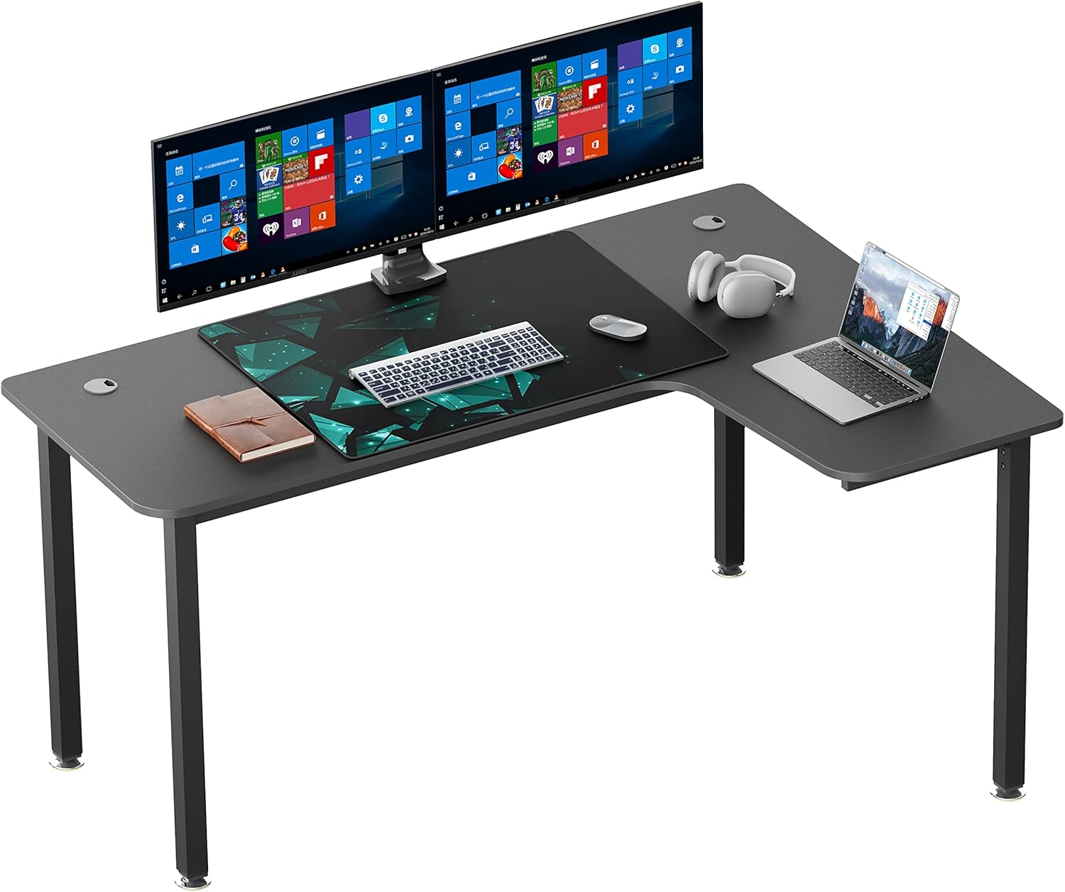 EXTRA LARGE DESKTOP: Our 61" L-shaped desk utilizes your room corners effectively, and offers plenty of surface area for your keyboard and mouse when writing, gaming, computer work and other home office activities.