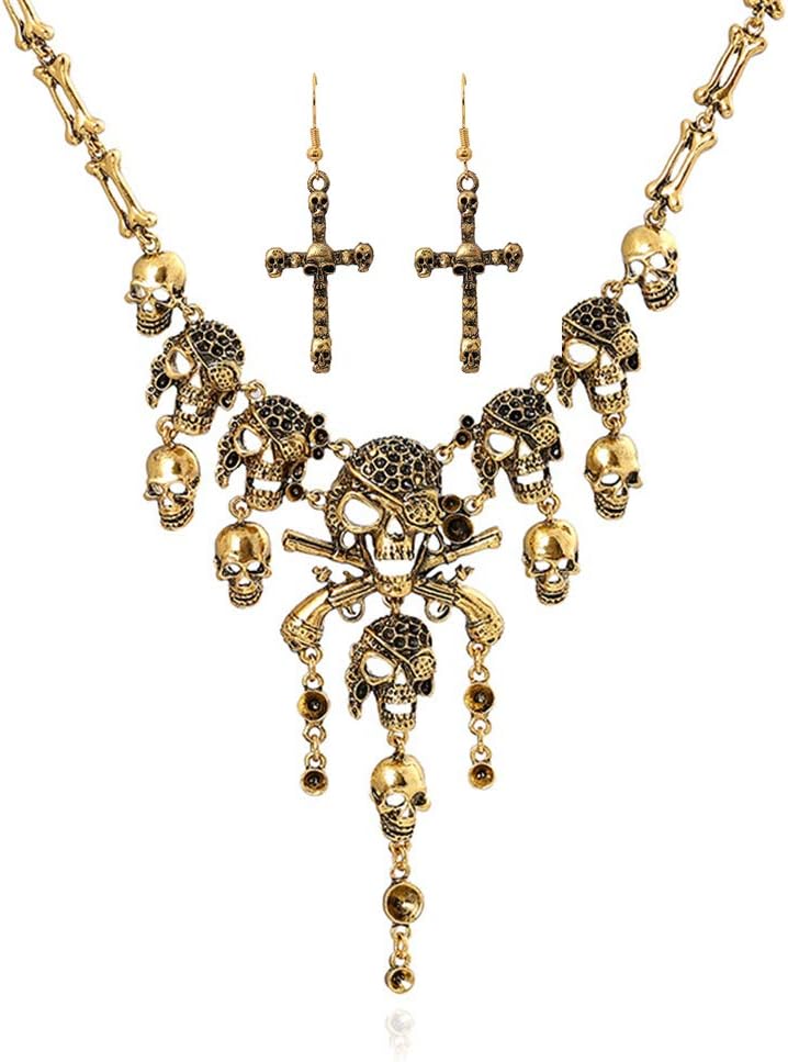 Jewelry Fashion Multi-Level Pirate Skull Tassel Charm Necklace Collar Bib for Women Horror Necklace Punk