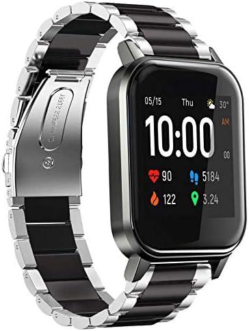 Compatible with HAYLOU LS02 Bands, Youkei Stainless Steel Metal Replacement Strap Bracelet Compatible with HAYLOU LS02 SmartWatch (Silver-Black)