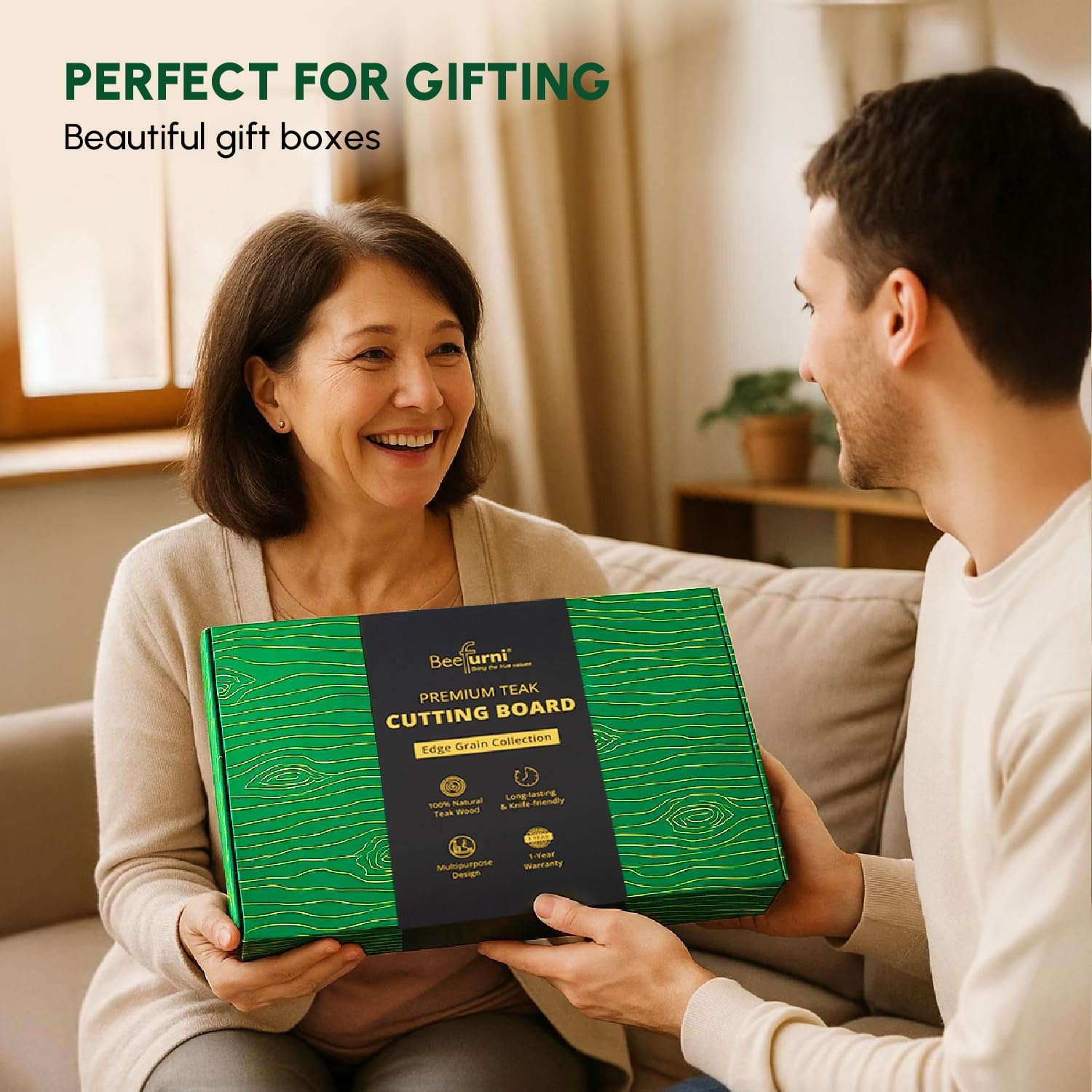 PERFECT GIFT IDEA - The outstanding beauty and functionality of this cutting board Teak hardwood makes it ideal for christmas presents, thanksgiving gift, housewarming gifts, wedding gifts, holiday gifts, gorgeous gift for chefs, and a thoughtful wooden gift for her.