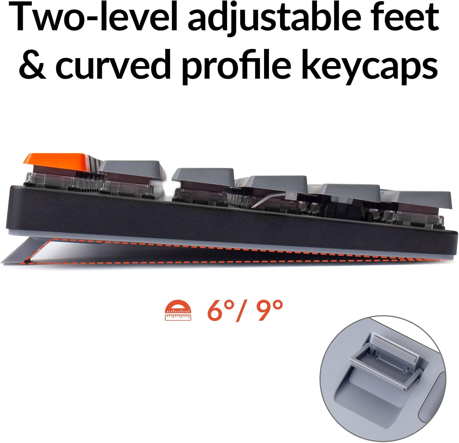 El interruptor óptico Keychron de perfil bajo rediseñado es un 40% más delgado que los interruptores convencionales con una distancia de pre-viaje y de viaje total más corta que activa una entrada y retroalimentación más rápido que los interruptores mecánicos convencionales/de perfil normal. Con el cuerpo de aluminio reforzado (cuadro inferior de plástico) hace que el K3 sea uno de los teclados mecánicos más delgados y ligeros del mercado.