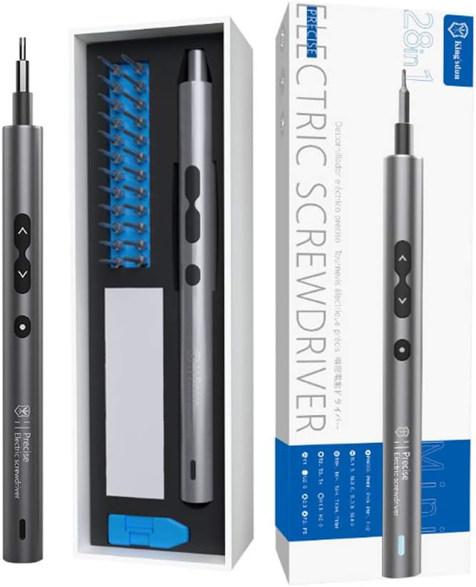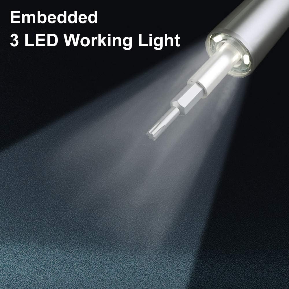 Kit de herramientas de destornillador inalámbrico 28 en 1, Juego de reparación electrónico mini recargable con 24 puntas estándar para destornillador, luz LED, magnetizador para teléfonos, cámaras, relojes, juguetes, computadoras para reparación rápida.
