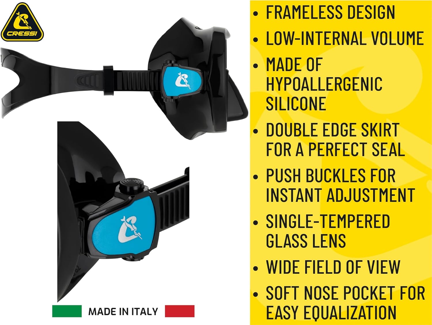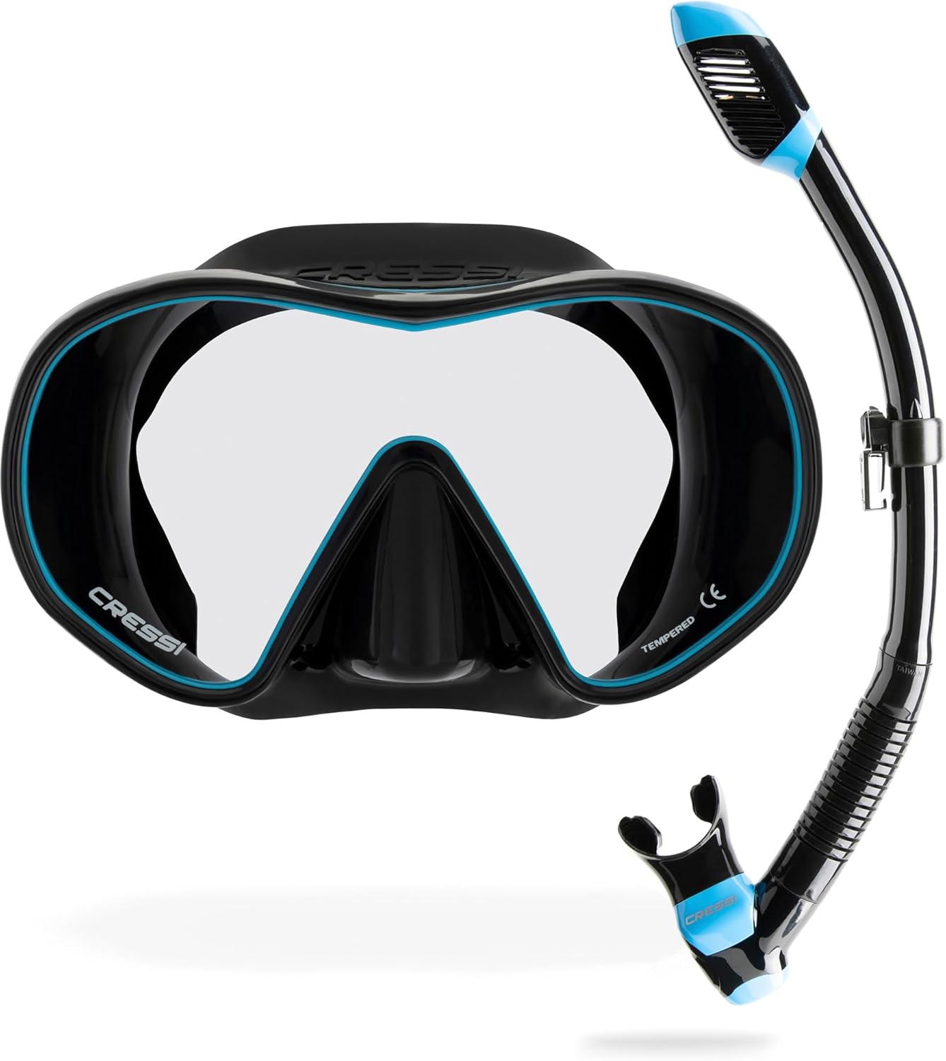 Cressi Single Lens Frameless Scuba Mask & Dry Snorkel for Snorkeling, Scuba Diving, F-Dual & Supernova Dry: Designed in Italy