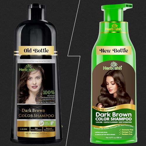 Champú para Colorear el Cabello Herbishh - Tinte Mágico para Cabello Gris, Color Duradero en Minutos - 500 Ml, 3-En-1, Libre de Amoníaco (Castaño Oscuro)