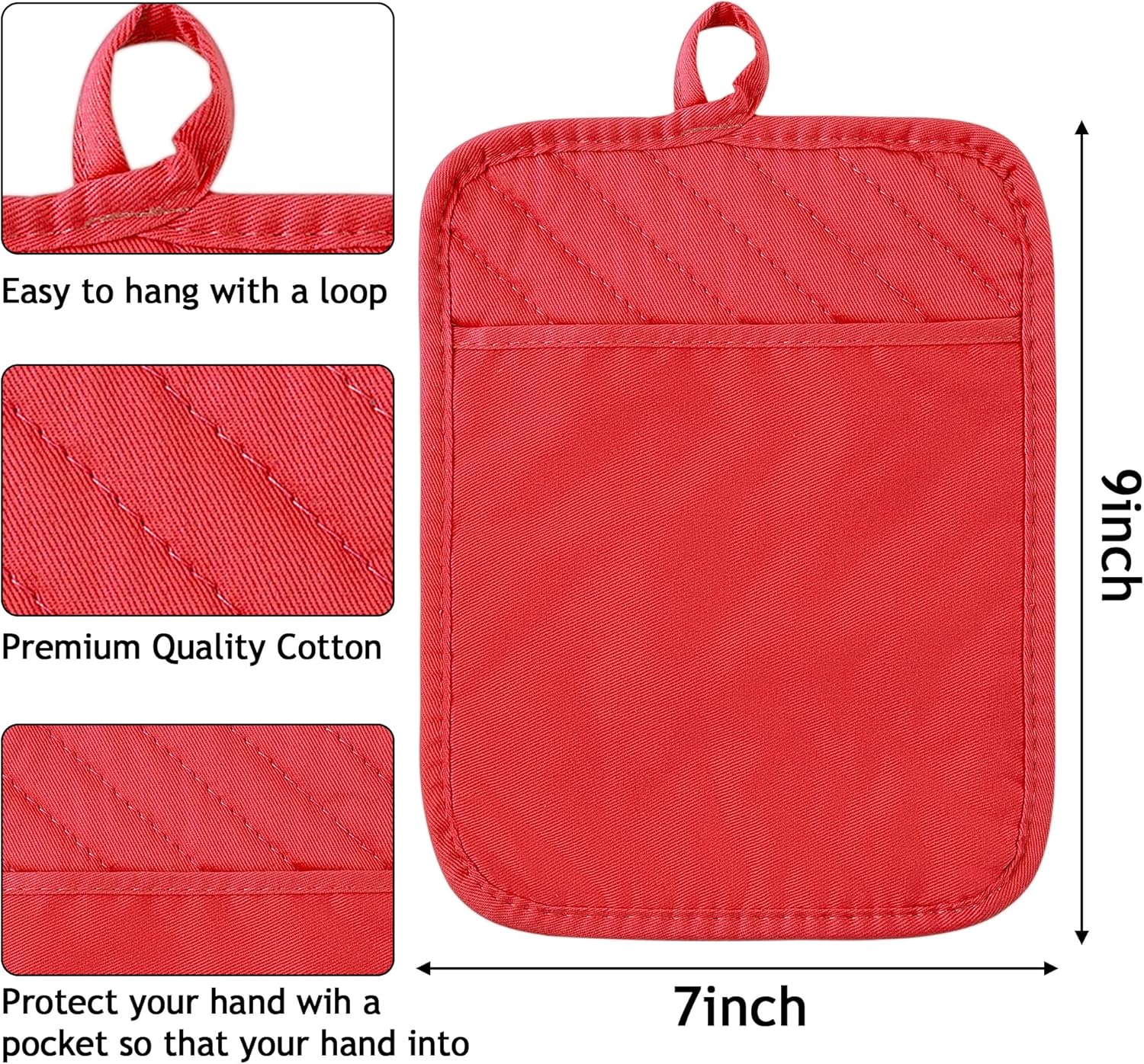 R HORSE 6Pcs Christmas Red Pot Holders with Pocket for Kitchen Cotton Pocket Pot Holder Set Heat Resistant Potholder Terry Coaster Oven Mitts Hot Pads Trivet for Baking Cooking 7''x9''