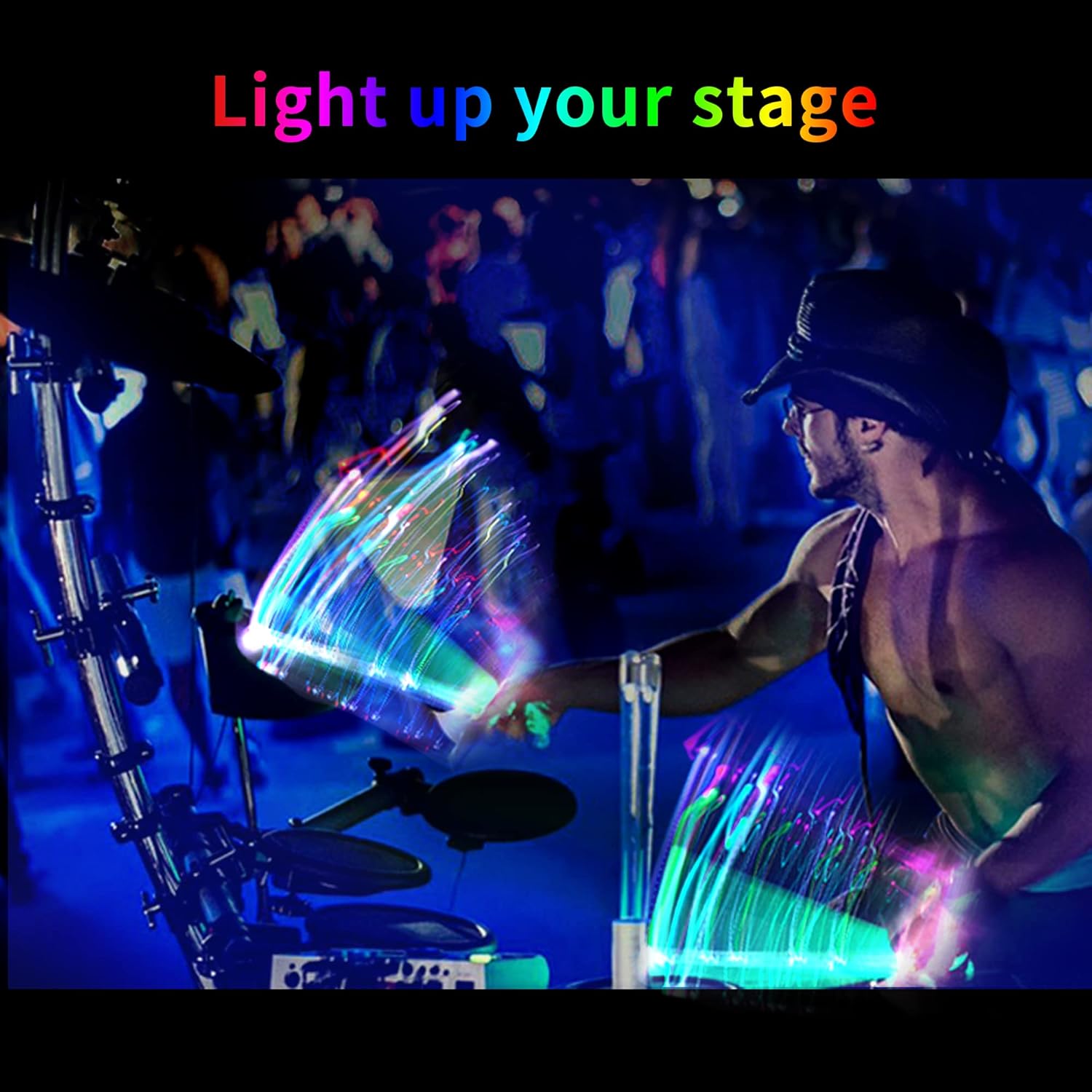 Rechargeable 15 Color Changing LED Light Up Drum Sticks With Storage Bag, Glow In The Dark Drumsticks, Drummer Gifts Glow Plastic Drum Sticks for Adults,Personalized DrumSticks(2pcs/Pack)