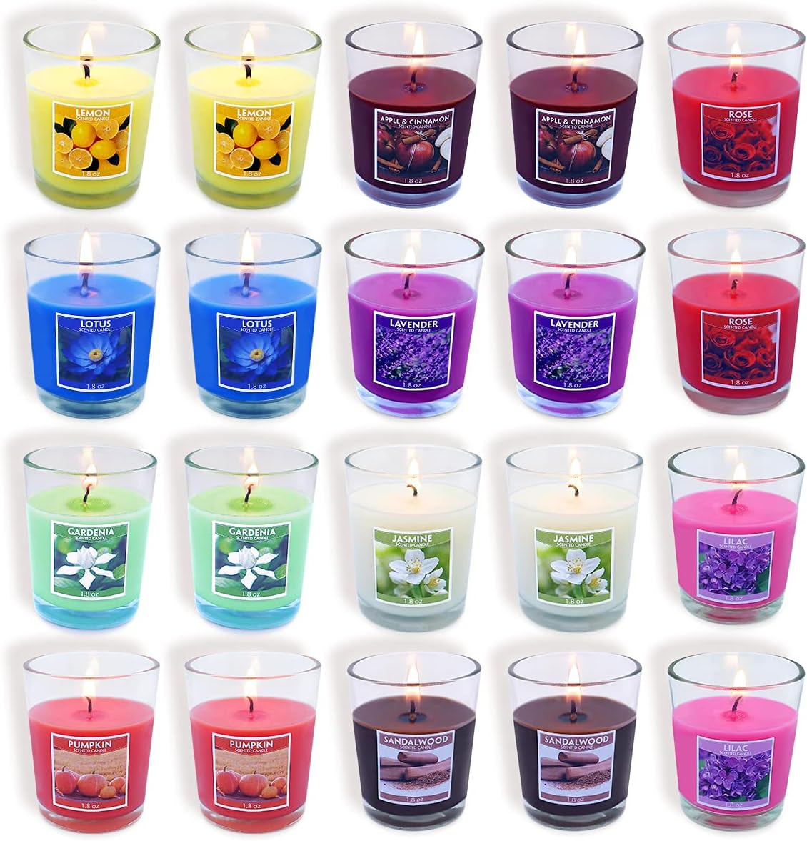 20 Packs Scented Aromatherapy Candle with 10 Fragrances, 1.8 Oz Soy Votive Candle for Home Decoration, Candle Gifts Baskets for Christmas Thanksgiving Anniversary