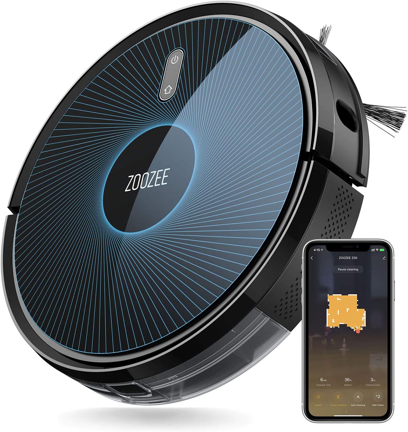 Aspiradora Robot Z50 con Potencia de Aspiración Máxima de 3000Pa, Aspirador y Trapeador 2 en 1, Batería Super de 5200mAh, Silencioso y Autocargable, Aspirador Compatible con Mascotas y Alfombras, Compatible con Siri Alexa