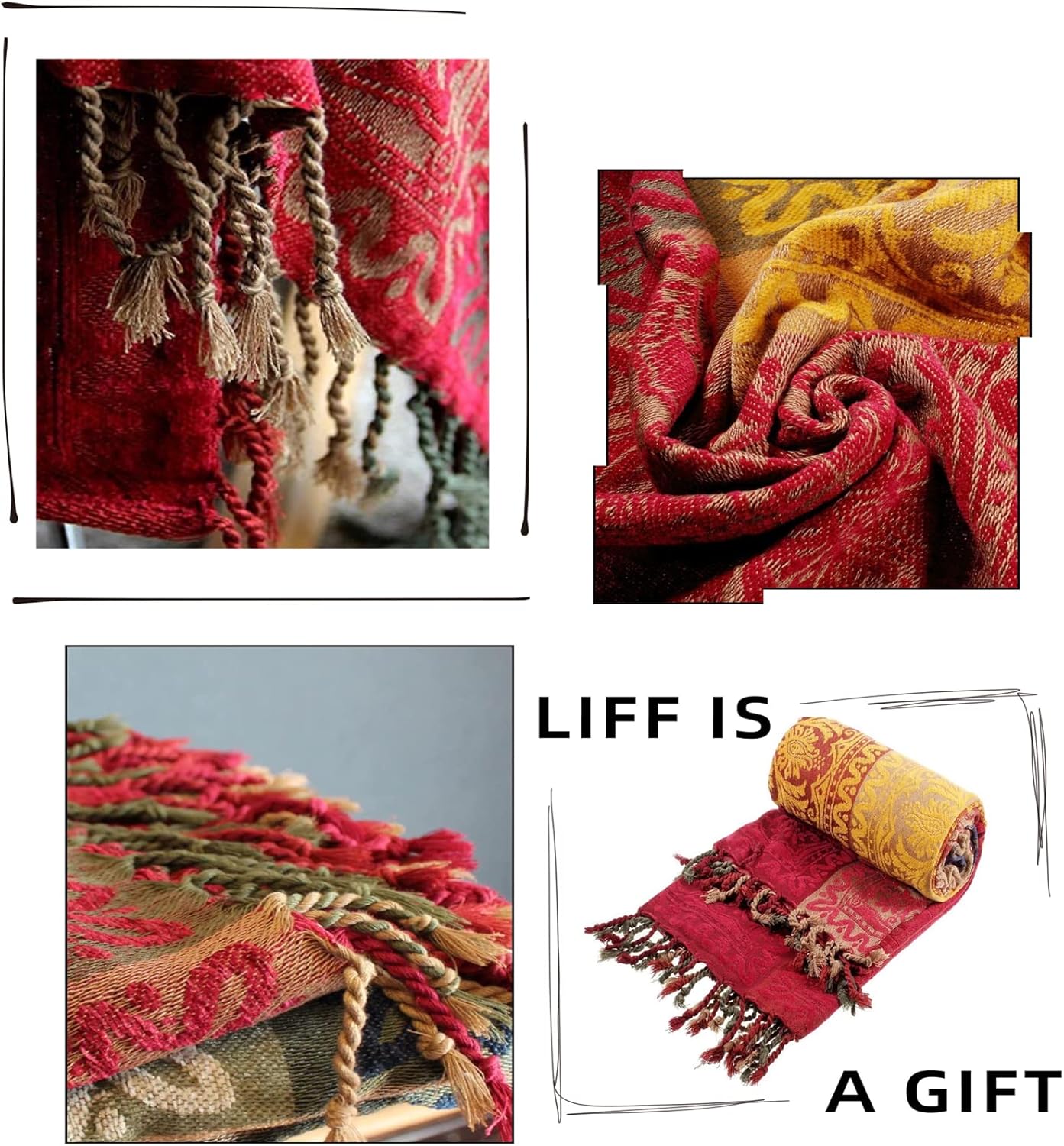Boho Throw Blanket, Chenille Jacquard Tassels Throw Blankets for Bed Couch Soft Chair, Bohemian Fringe Tassels (Red, Large 86 * 102Inches)