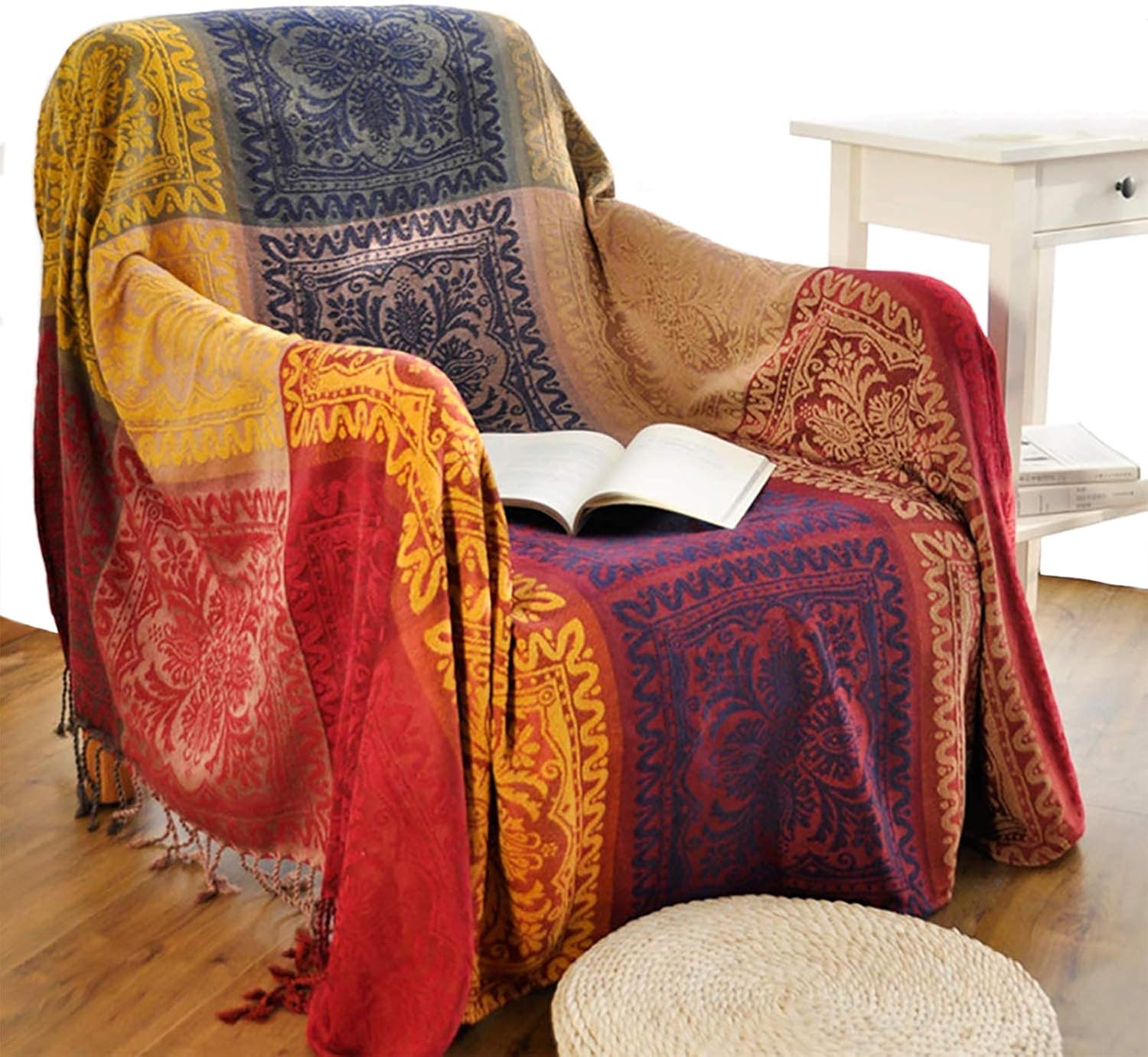 【DESIGN】The Boho throw blanket Adds extra texture to your decor and turns your room into an inviting space, The bright colors allow for easy mixing and matching with your decor or other accent pieces, Simple yet distinctive pattern with jacquard technique. Our bohemian sofa cover brightens up your armchair or sofa.