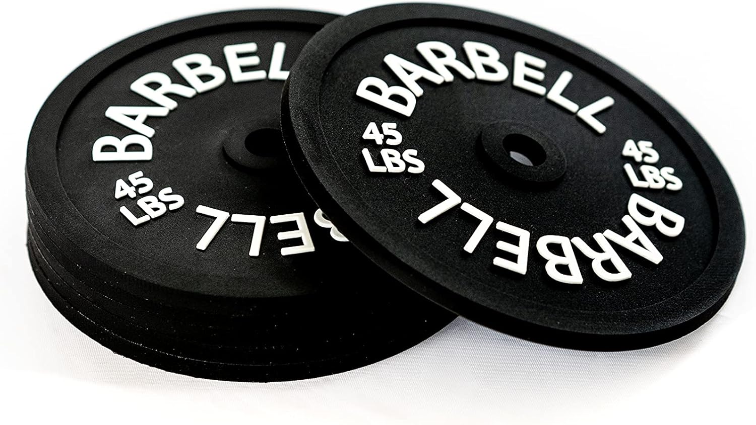 Gym Gifts for Gym Lovers - Gym accessories can compliment more rooms than just your at home gym essentials. These cute and funny coasters look like small barbell bumper plates and can be placed wherever you desire.