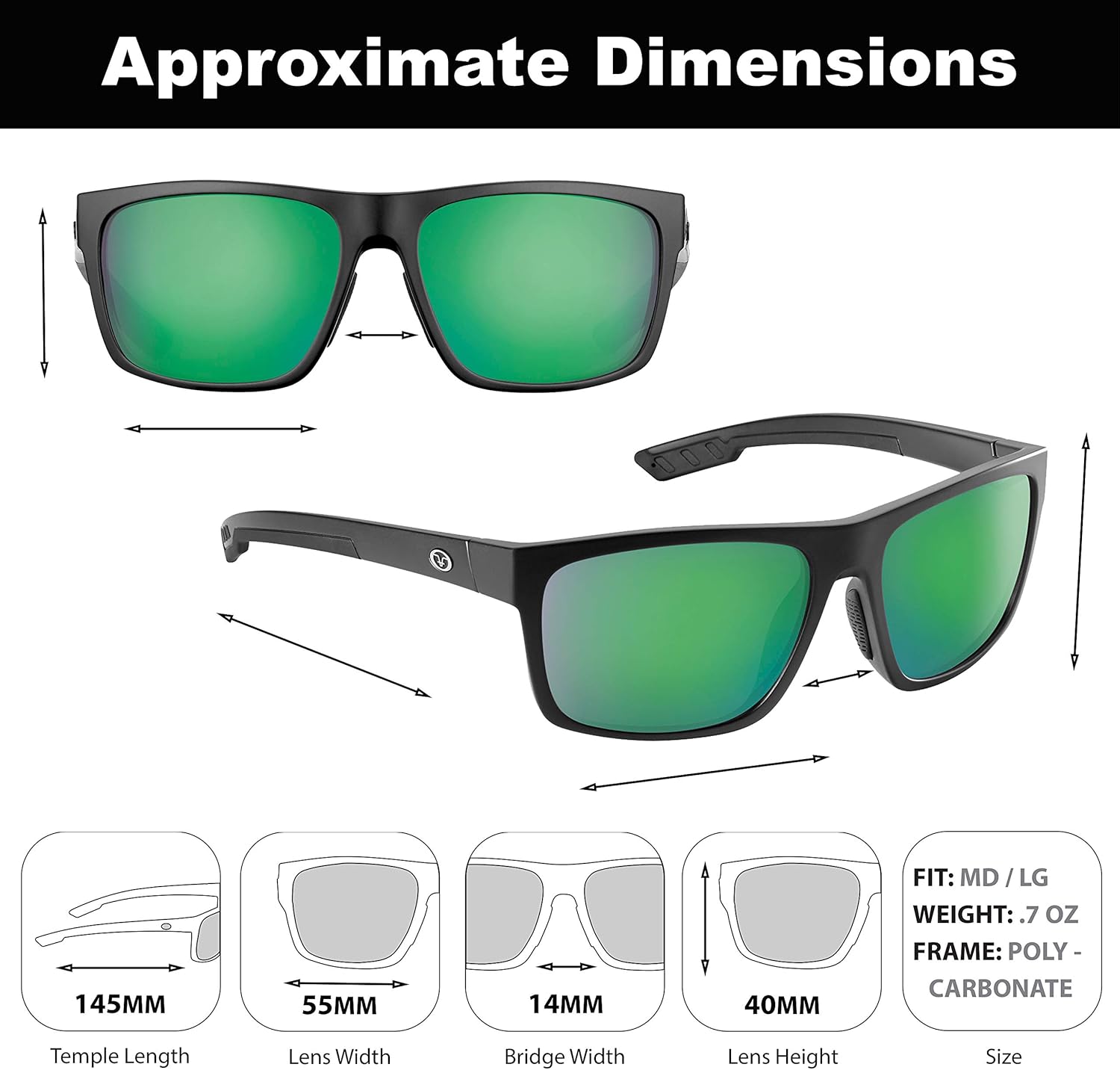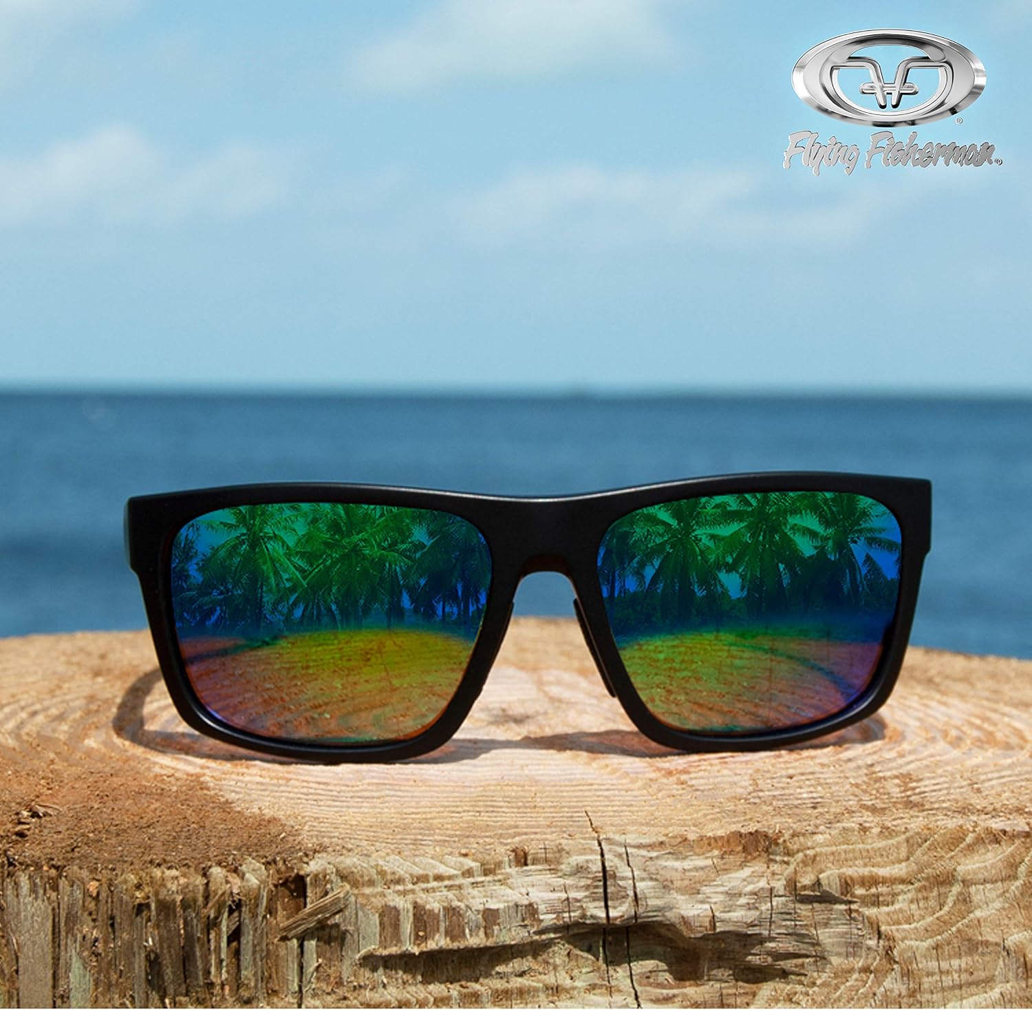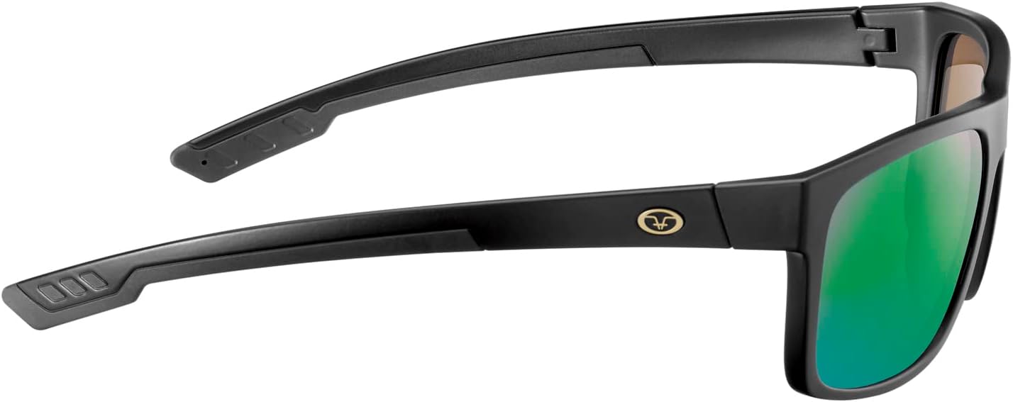 Flying Fisherman Offline Classic Polarized Sunglasses, Matte Black Frame/Amber-Green Mirror Lens, Medium/Large