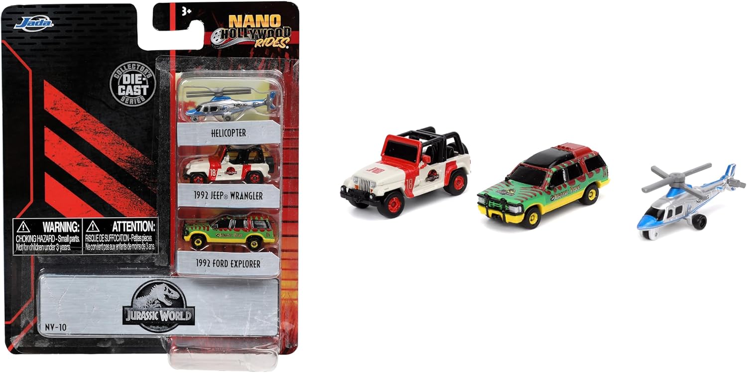 Jada Toys "Jurassic World 1.65"" Nano 3-Pack Die-cast Cars Wave 1, Juguetes para Niños y Adultos (31955)