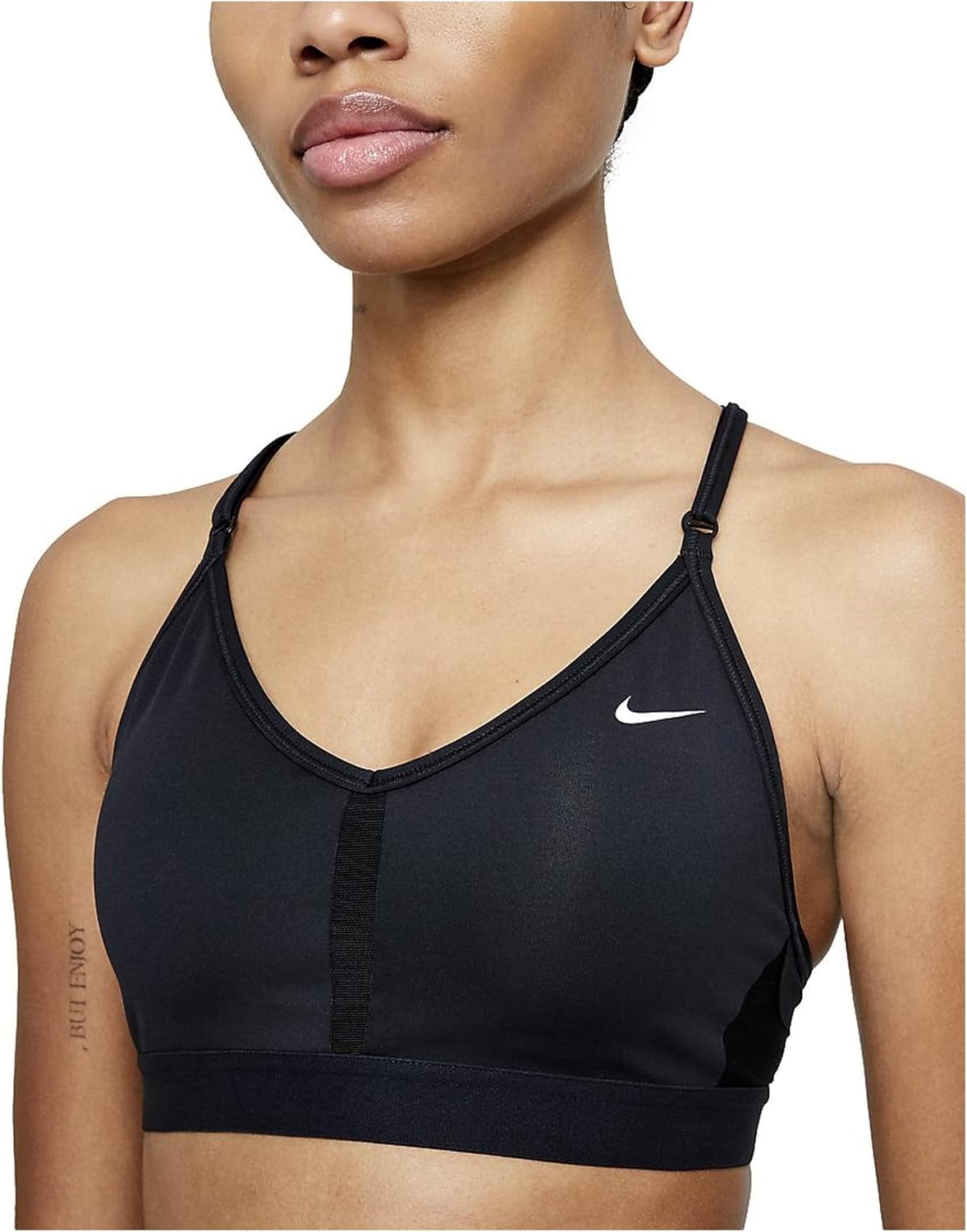 The Nike Dri-FIT Indy Sports Bra makes simple support even easier with straps that adjust in front. The soft fabric (made from at least 50% recycled polyester fibers) is designed for breathability in the front and back in case you sweat. With easily removable pads that slide from the top, it's effortless comfort.