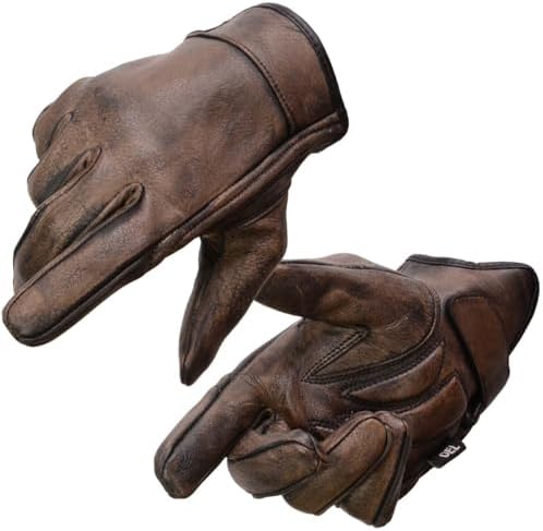 ✅ Premium Cowhide Leather Riding Gloves | Our specially crafted full-grain brown cowhide leather riding gloves offer premium protection for your hands and fingers. Made from impermeable cow skin, biker gear gloves provide a perfect blend of style and comfort. With their thicker and stronger construction, they are built to withstand tough riding conditions while delivering long-lasting performance. Cowhide leather will continue to soften over time and with use, it retains its durability.