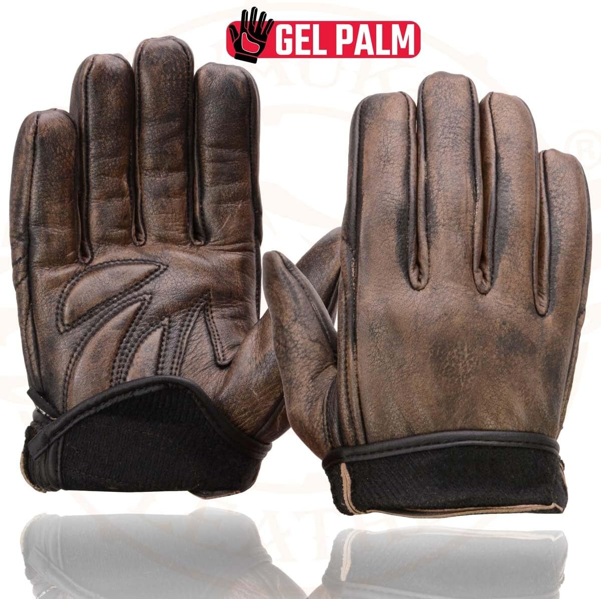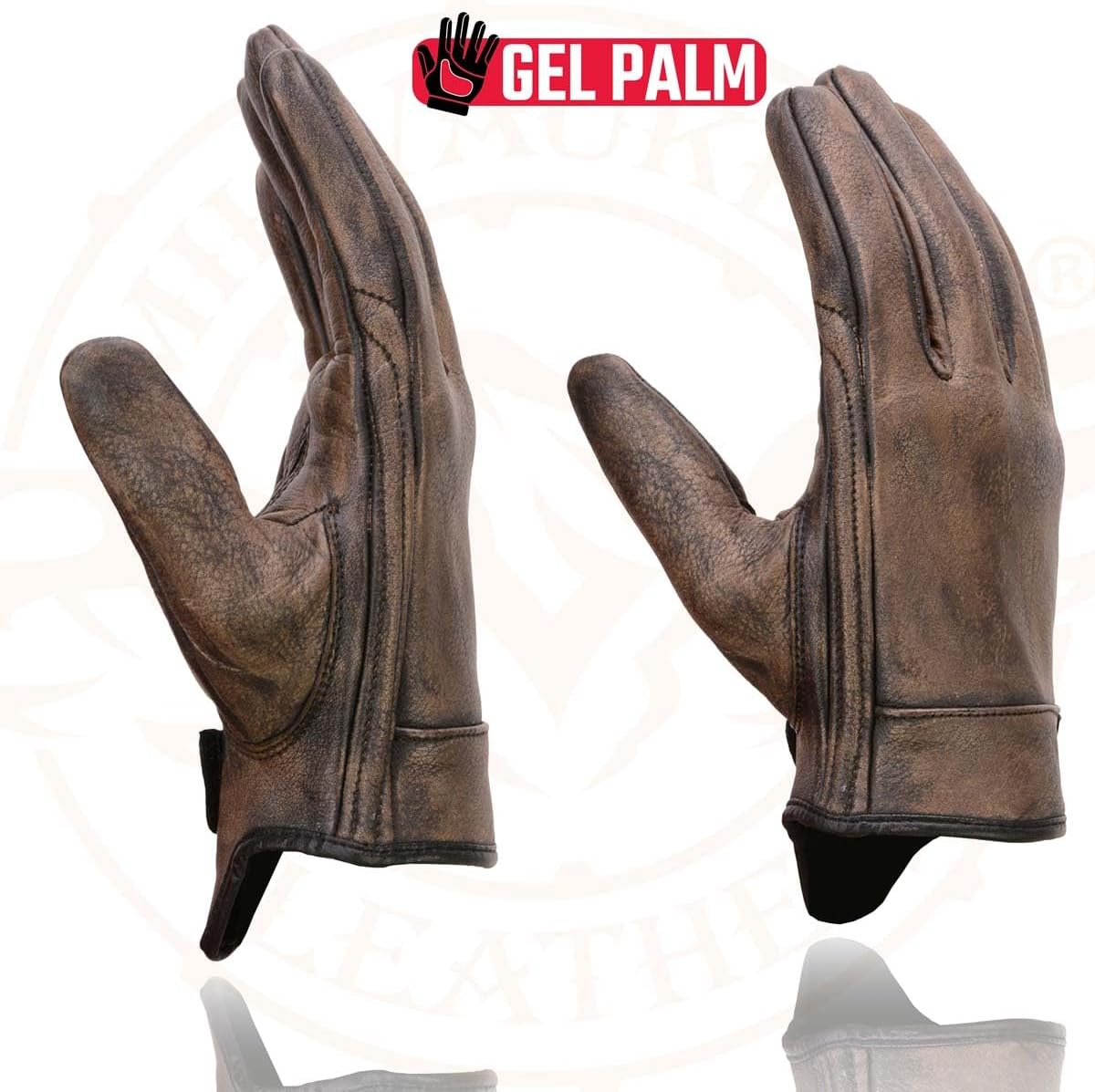 Milwaukee Leather MG7512 Men’s Distressed Brown Light Lined Cruiser Gloves with Gel Palm FeaturesMade of Full Panel Premium Distressed Brown Cowhide LeatherShort Wristed Styling w/ Adjustable Wrist StrapLightly Lined for Comfort and ProtectionGel Palm Application Increases Comfort and Provides a Better Riding Experience (Less Vibration and Comfort While Riding) with Stretch SideSide Stretch for the Perfect FitMilwaukee Leather - Once You Have It, You Love It!
