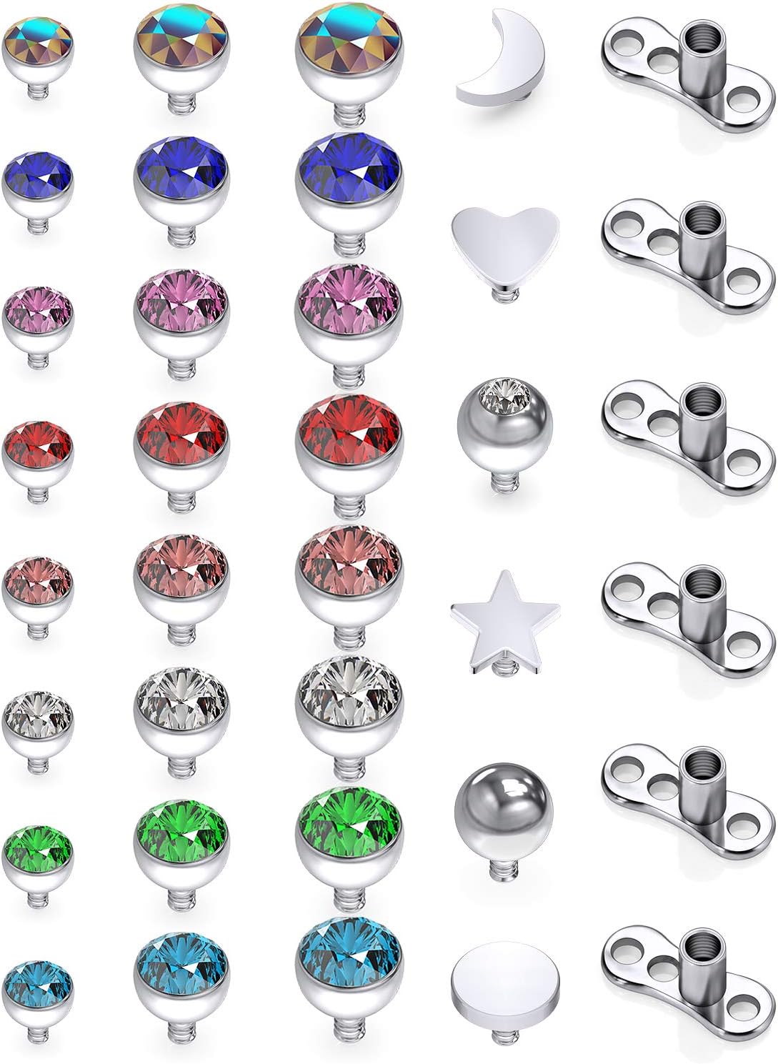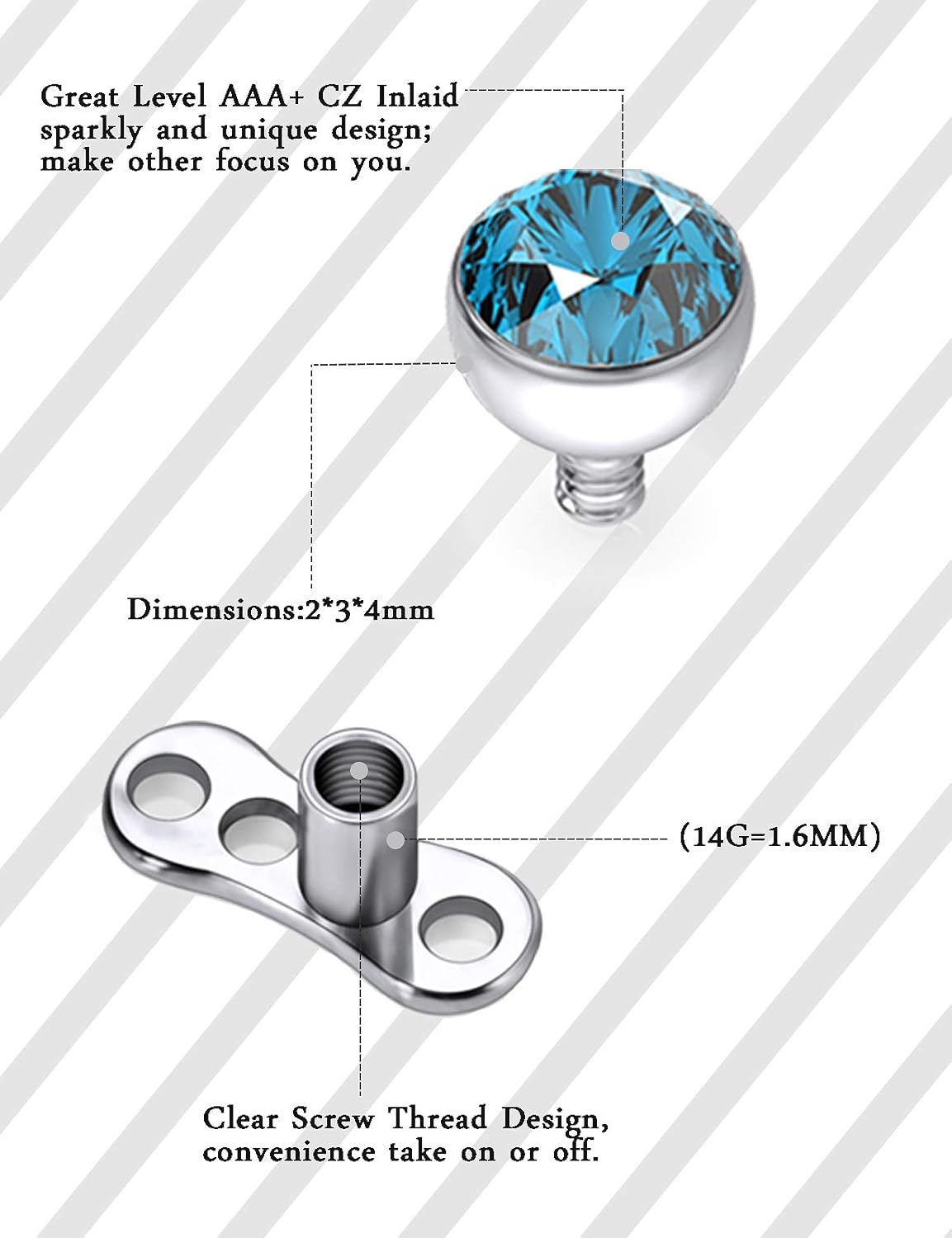 14G Dermal Piercing Jewelry Dermal Anchor Tops and Base Titanium Microdermals Piercing for Women Men Jeweled CZ Moon Deamal Piercings Jewelry 2mm 3mm 4mm,Mixed color(N-BOE-0097)
