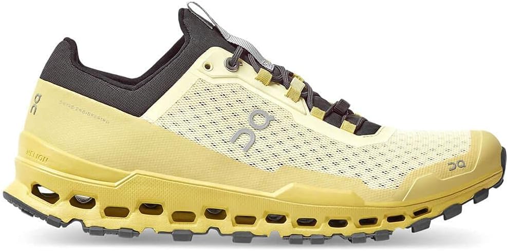 The Cloudultra silhouette features a Mesh upper with taped panels, rubberized logos, a perforated collar, and rope laces. It has a rubber midsole with cut-outs and a rubber outsole. Available in Olive / Eclipse color and made from Mesh / Leather material.