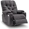 MCombo Electric Power Swivel Glider Rocker Recliner Chair with Cup Holders for Nursery, Hand Remote Control, USB Ports, 2 Side & Front Pockets, Plush Fabric 7797 (Grey)